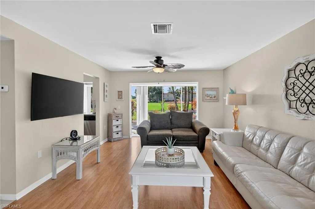 Looking for a 2-bed villa in Lakewood Naples with golf course views and full updates? This turnkey furnished home offers impact doors and windows, a new roof, and low HOA fees—just minutes from beaches, parks, and 5th Avenue. Enjoy golf course views from this beautifully updated 2-bedroom, 1-bathroom villa offering 1,124 square feet of bright, open living space. Recent upgrades include a renovated kitchen and bathroom, newer flooring, newer electrical panel, and a brand new shingle roof. Impact-rated windows and a hurricane-grade garage door add security and peace of mind. The oversized one-car garage includes an in-unit laundry area, extra storage, and a brand new dryer. Outside, the home features a newer private driveway plus extra parking next to the property for added convenience. This property is being sold turnkey furnished—move right in and start living.