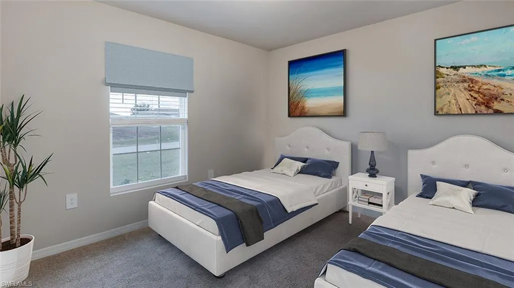 covered under-trusses lanai and all concrete block construction. This home is on a beautiful corner lot located in Cape Coral. This home boasts Designer cabinets and quartz countertops in both the kitchen and baths. Experience the timeless beauty and durability of RevWood laminated wood floors featured throughout the home, modern flat stock trim and baseboards, all stainless kitchen appliances including refrigerator, paver