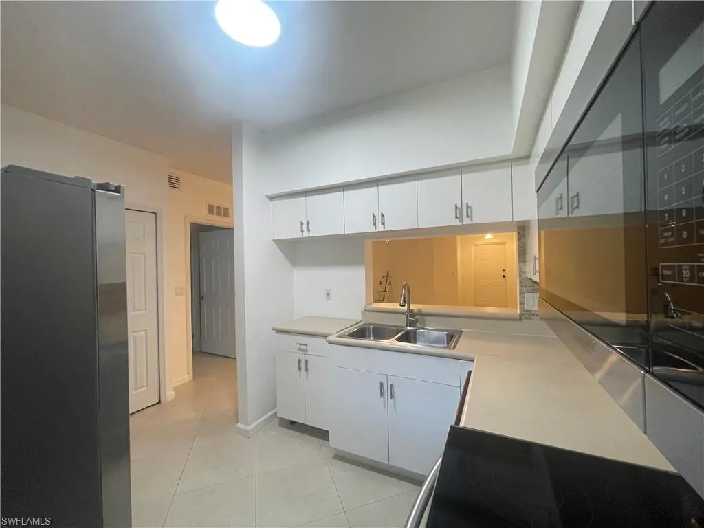 LOCATION, LOCATION! 3 bedrooms, 2 bathrooms, 1st floor, corner, 1118sfts. Open living/dining floor plan with tile floors throughout, kitchen with white cabinets and stainless steel appliances and pantry. The master bedroom has a spacious walk-in closet, the bathroom with shower has a glass door and dual sinks.The two guest bedrooms access a full bathroom. The screened lanai has a storage.The cove at Six mile is a community with pool & fitness probably with the lowest condo Fee in Fort Myers, just $296.00 monthly. Two assigned parking space,one is steps to your front door another one is steps from your lanai. Walk to many shops, restaurants and natural parks. Agents please read the remarks!