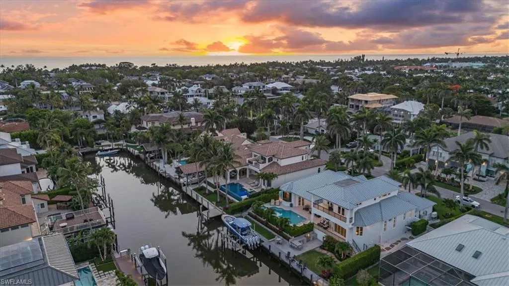 Tucked along a direct Gulf-access canal in prestigious Aqualane Shores, this spectacular estate captures the essence of Naples waterfront living. Offering southern exposure, a new seawall and dock (2023), and a full interior transformation – this home combines timeless coastal design with modern innovation and effortless livability. Designed for those who value refined coastal living, the residence showcases seamless indoor-outdoor flow with a resort-style pool and spa, expansive tiered decking, and an upgraded outdoor kitchen overlooking tranquil water views. Inside, wide-plank oak flooring, soaring ceilings, and elegant millwork create a timeless yet modern aesthetic. The light-filled main level features a grand great room, gourmet chef’s kitchen, and a serene primary suite with direct lanai access, while an additional guest suite provides comfort and privacy. Further highlights include a whole-home generator, upgraded HVAC systems with dehumidifier and garage A/C, new pool equipment, 25,000 lb. boat lift, and all-new televisions throughout. Enhanced landscaping, a comprehensive alarm and camera system, and meticulous attention to detail, inside and out, ensure the home lives as effortlessly as it looks. Just a short walk from Naples’ world-class beaches and the fine dining and boutiques of Third Street South, this Aqualane Shores home exemplifies luxury waterfront living at its finest.