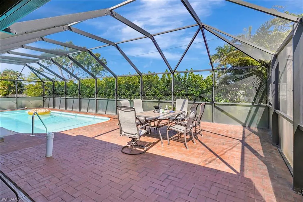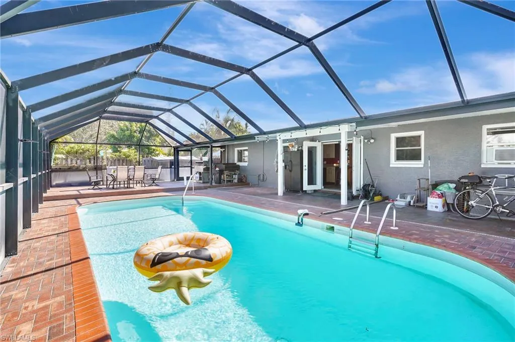Discover the quintessential Florida lifestyle in this stunning 3-bedroom, 2-bathroom pool home, ideally located in one of South Fort Myers’ most sought-after neighborhoods. Designed with both elegance and functionality in mind, the home features a custom-built chef’s kitchen and an expansive private lanai that surrounds a sparkling pool—perfect for seamless indoor-outdoor entertaining. The converted garage includes a versatile bonus room, ideal for a home office, gym, or guest space, while two energy-efficient mini-split systems help keep utility costs low. A dedicated, secure area for boat or RV parking adds exceptional convenience for outdoor enthusiasts. Additional highlights include a screened front porch, circular driveway, newer metal roof and all-new vinyl windows that enhance natural light and energy efficiency. The property also boasts security lights, a large tool shed for extra storage, a whole-house eco water filter system for clean living, and a newly installed electrical masthead for peace of mind. Located near top-rated schools, amenities, and the beautiful Gulf beaches, this home offers a rare opportunity to enjoy refined living in your own private oasis.