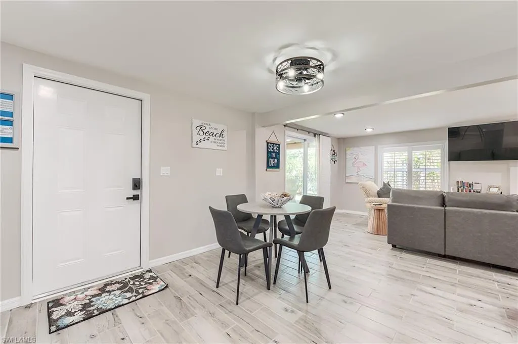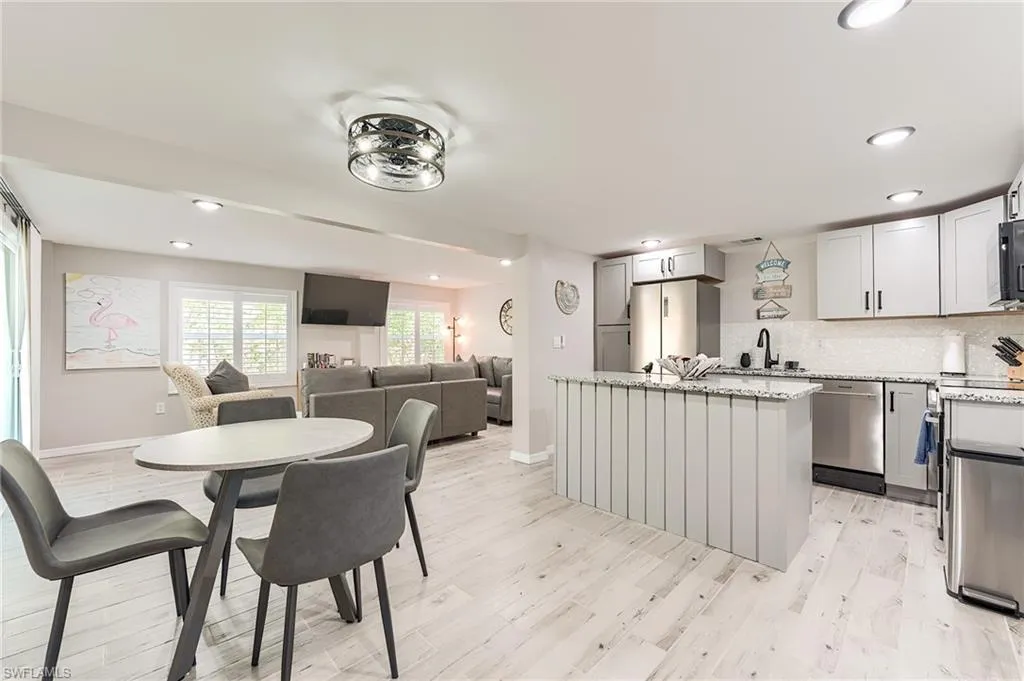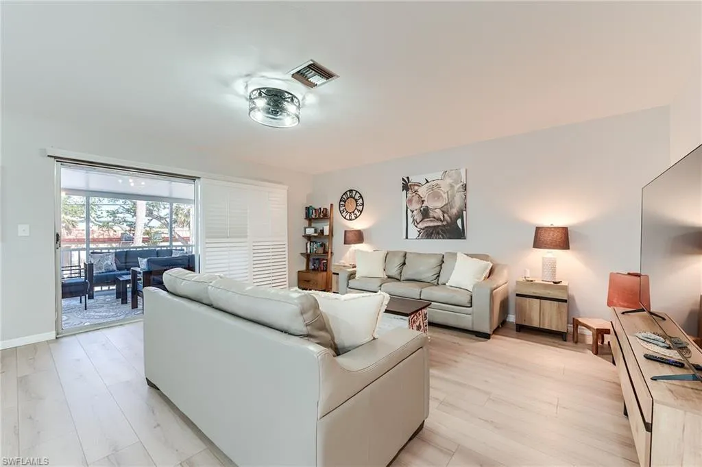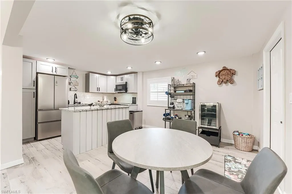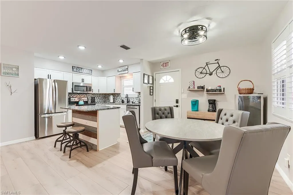 Coastal Cottage Retreat with Pool and Premier Beach Location! This rare Fort Myers Beach duplex combines island charm with stylish upgrades, offering the perfect balance of income potential and personal enjoyment. Ideally situated within the sought-after weekly rental zone and just a short walk to the Gulf, the property features a brand-new heated saltwater pool and two beautifully updated living spaces. The upper residence offers two bedrooms and two baths centered around an open living, dining, and kitchen design that opens to a screened lanai and newly constructed composite deck—ideal for relaxing or entertaining. The kitchen has been thoughtfully redesigned for both beauty and functionality, while each bathroom features contemporary tile, sleek vanities, and glass-enclosed showers. The lower level provides a bright one-bedroom, one-bath layout with a fully renovated kitchen, center island, and an open dining area that flows naturally into the living space. A screened lanai extends the coastal lifestyle outdoors, providing a comfortable place to unwind. The backyard oasis offers tropical landscaping, paver decking, and low-maintenance vinyl fencing surrounding the heated saltwater pool—creating a serene and private setting. Located near restaurants, beach bars, and local attractions yet away from the main bustle, this turnkey property is an exceptional opportunity for investors or those seeking their own slice of paradise on Fort Myers Beach.