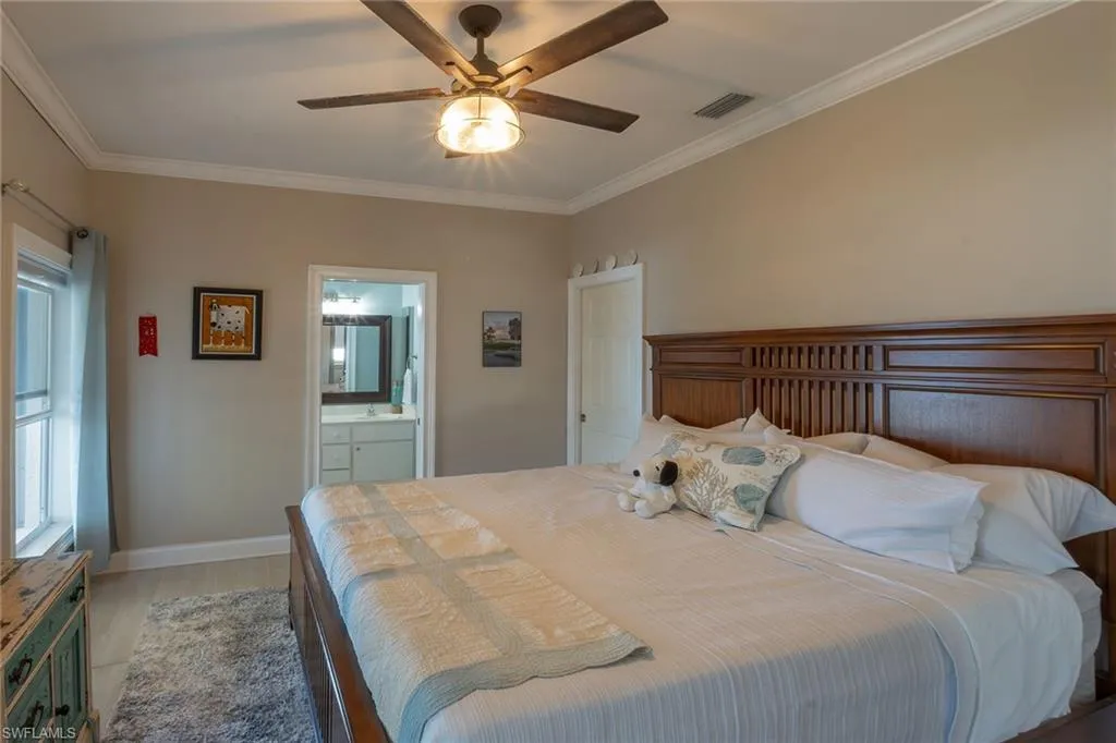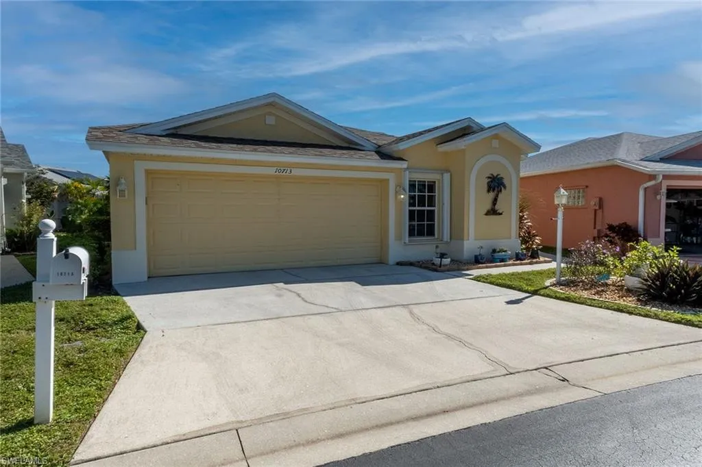 Rarely available waterfront views enhance the serenity of this lakefront residence, offering two-bedroom residence with den, two full baths, and a two-car garage. Thoughtfully updated with crown molding, tile and vinyl flooring throughout, and an upgraded electrical panel equipped for electric vehicle charging. A newer roof (2023), HVAC (2023), water heater (2023) and hurricane shutters (2024), this home is designed for comfort and sustainability. Located within The Island Club is a gated enclave of 250 single-family homes surrounding 23-acre lake residents enjoy exclusive access to a lakefront clubhouse, community pool, spa, and fitness room, along with tennis, pickleball, shuffleboard, and scenic walking trails. Ideally situated just minutes from the Gulf beaches, Florida Gulf Coast University, RSW International Airport, and premier shopping and dining at Coconut Point, this home offers effortless access to Southwest Florida’s most desirable attractions. No flood insurance is required.