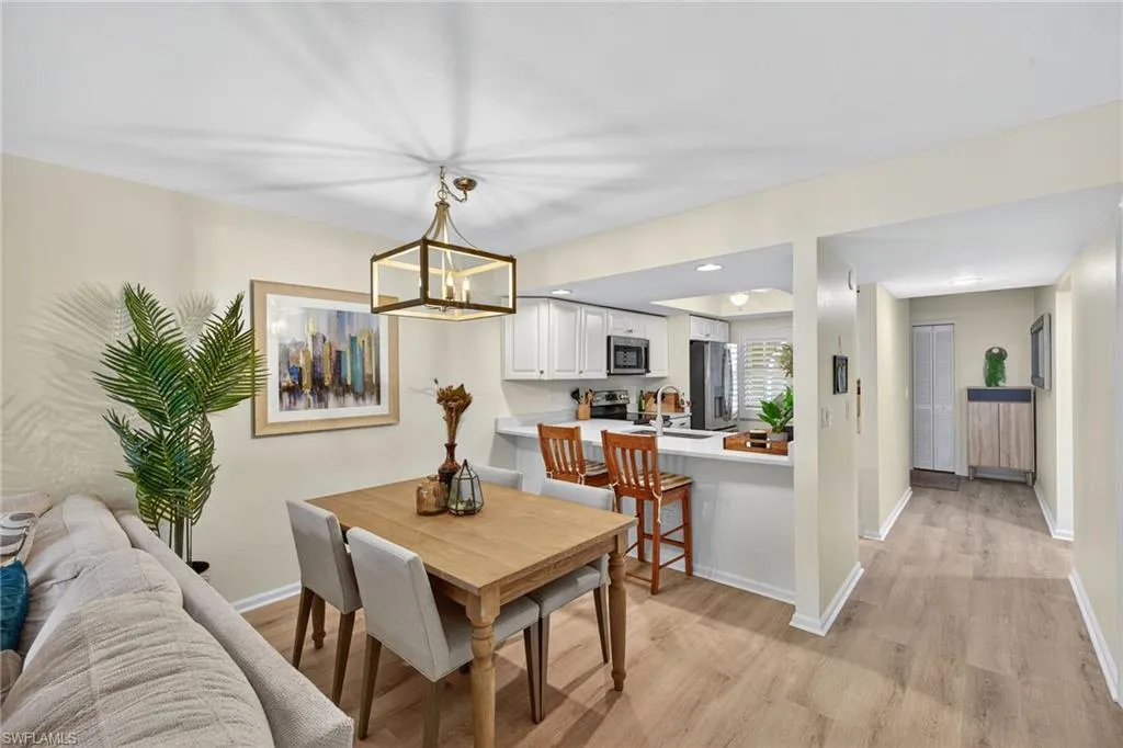 Welcome to this rarely available 3-bedroom, first-floor condo offering the perfect blend of comfort, style, and convenience. Step inside to find beautiful 12mm luxury vinyl plank flooring, and a remodeled kitchen featuring quartz countertops and newer stainless steel appliances. Thoughtful updates include an expanded guest closet for additional storage, a full laundry room with custom cabinetry and shelving, new light fixtures, and an extended patio ideal for relaxing or grilling outdoors. The spacious primary suite offers an en-suite bath with a walk-in shower and generous walk-in closet. Just steps from the community pool, this home combines easy living with an unbeatable location—only 3.5 miles to Bonita Beach, just 1.3 miles to Downtown Bonita’s vibrant dining and entertainment, and a quick 20 minutes to RSW International Airport. Come and see this gem for yourself! FLOOD ZONE X!