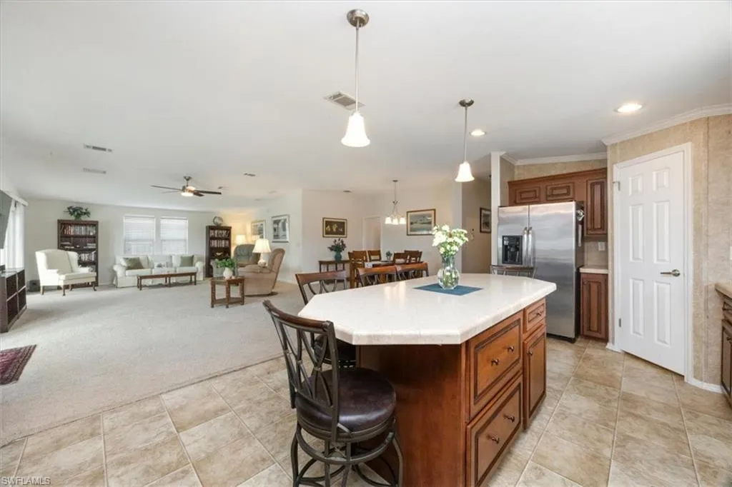 This 3 bedroom, 2 bath home is located in the 55+ community of Imperial Bonita Estates in the Villages section where you own your land. This spacious single-family owned 2011 model is a nicely designed triple wide home with ample parking and an attached one car garage. Its location in the back of the community allows for much privacy while also offering an oversized screened in porch on the front. This home has an open concept floor plan with a split bedroom set up with just under 2,000 square feet under air. The oversized master bedroom offers a large walk-in closet and master bathroom with plenty of storage space. The kitchen boasts stainless steel appliances, a walk-in pantry, and an oversized island with seating, making it ideal for entertaining. There is also a separate dining area in the great room. Two sliding doors allow easy access from the central great room to the front porch. This home has been well maintained inside and out and also has its own central lawn sprinkling system. It is conveniently located close to all services, shopping, and the RSW airport. Annual membership to Imperial Bonita Estates, which includes access to the central clubhouse, pool, shuffleboard courts, boat ramp and other amenities, is available for an ADDITIONAL $550 per year. This is a “turn key” sale.