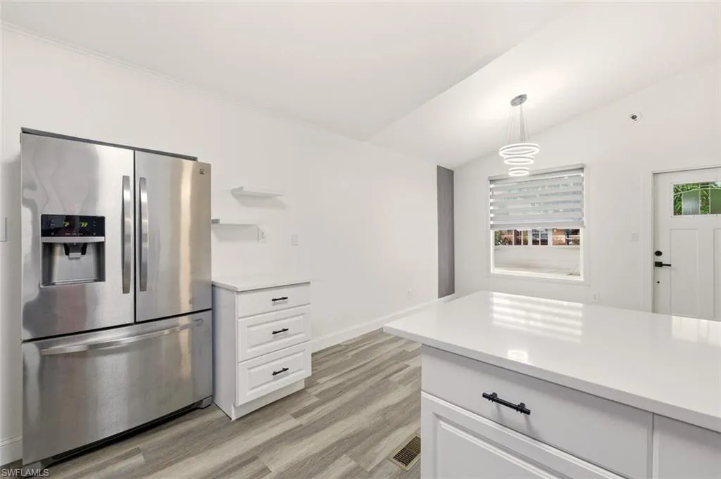 Welcome to your move-in-ready oasis! With (NO HOA’S) in South Naples, 2master bedrooms + Den and 2-1/2 Bathrooms, this stunning, newly remodeled home is perfectly situated on a tranquil canal, located just 15 minutes from downtown Naples and its beautiful beaches, offering the ultimate indoor-outdoor living. Step inside to an open concept living space with bright, airy finishes and a brand-new gourmet kitchen featuring new cabinets and sleek quartz countertops, complete with stainless steel appliances, along with modern light fixtures and ceiling fans throughout. Enjoy the waterproof and scratch-resistant luxury vinyl plank flooring in all living areas, ideal for families and pets.” The layout features two private master bedrooms, one of them with a glass-enclosed walk-in shower, dual vanities and a oversized walk-in closet and modern fixtures. The additional bedrooms are generously proportioned, each offering abundant natural light and large closets.