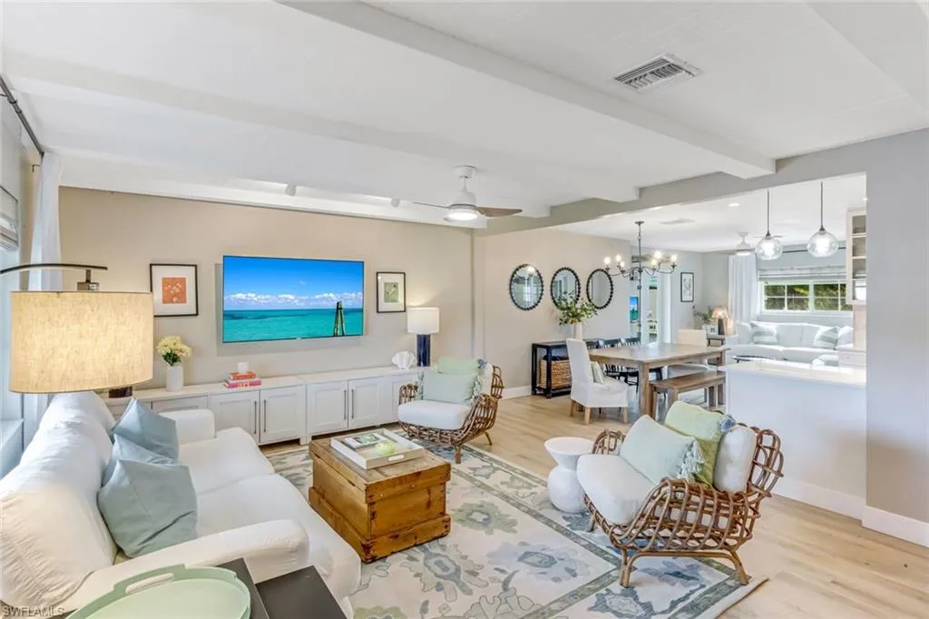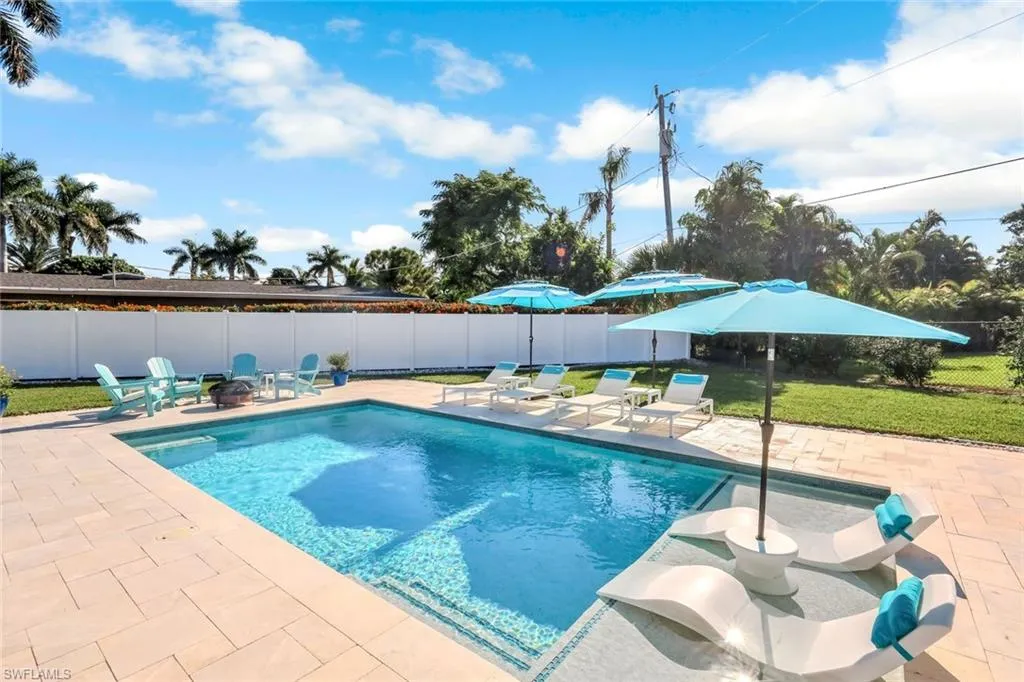 Step inside to find a full top-to-bottom renovation—no detail overlooked. The home features brand new luxury vinyl plank flooring, hurricane impact windows and doors, and all new electrical, new AC vents, and returns throughout. The custom kitchen is a true showpiece, boasting Fisher & Paykel appliances, quartz countertops, soft-close cabinetry with deep drawer storage, and designer finishes. Both bathrooms have been completely remodeled with Kohler fixtures and high-end tile work. Outdoors, enjoy your own resort-style oasis—a heated saltwater pool with sun shelf, LED lighting, and a travertine deck, (POOL BUILT IN 2022) all surrounded by lush new landscaping and new sod. The yard has been regraded and features a new septic field, 8-zone irrigation system, and paver driveway and walkways. The screen-enclosed patio is perfect for entertaining or quiet relaxation. Additional highlights include a NEW ROOF 2022 NEW HOT WATER HEATER 2025, epoxy garage flooring, attic fan, storage, and a new washer and dryer. This is truly a move-in ready showstopper in one of Fort Myers’ most sought-after neighborhoods—just minutes from shopping, dining, and the river. Don’t miss your chance to own this picture-perfect piece of paradise.