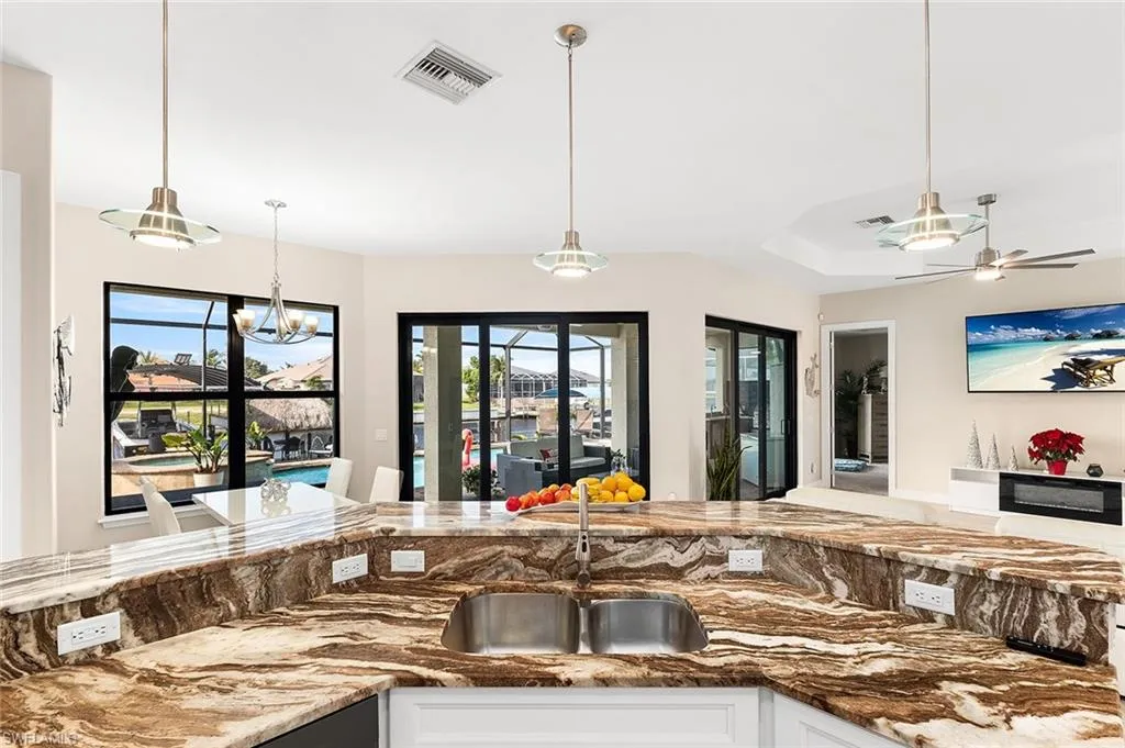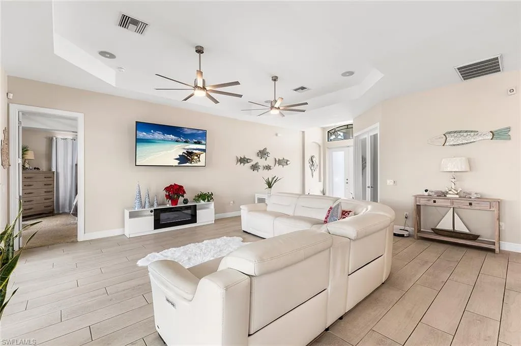 Unforgettable sunsets and Southwest Florida luxury!! Don’t miss this rare opportunity to own a piece of paradise! This stunning Gulf access home offers everything you need to embrace the ultimate Florida waterfront lifestyle—from your own private beach and boating accommodations to expansive indoor-outdoor living spaces designed with both comfort and luxury in mind. Situated on a beautiful intersecting canal with direct Gulf access, this home features western rear exposure, offering panoramic sunset views that create a breathtaking backdrop every evening. Whether you’re lounging by the water, entertaining guests, or simply enjoying a quiet evening at home, the scenery is always spectacular! Boaters will appreciate the three boat lifts ranging from 3,000 to 20,000 lbs, allowing you to accommodate multiple vessels with ease. There’s also a custom kayak rack for all your paddle adventures. The outdoor area is a true showstopper—featuring a resort-style setup that includes a tiki hut, outdoor kitchen, and a custom bar top with built-in fire pit. This space is perfect for entertaining or unwinding in your own private oasis. The paved driveway, 3-car garage, and lush tropical landscaping add to the home’s impressive curb appeal. Inside, the home offers a spacious and thoughtfully designed floor plan with 3+ bedrooms and 3 full bathrooms. The luxurious primary suite is a retreat of its own, complete with dual walk-in closets and a spa-inspired bathroom. Throughout the home, you’ll find high-end finishes, including quartz countertops, stylish fixtures, and an open-concept layout that brings natural light and water views into every corner. This is a must-see property for those seeking a perfect blend of location, lifestyle, and luxury. Tucked in a desirable and growing area close to shops, restaurants, and major thoroughfares, you’re also near the exciting new Grove and Seven Islands developments, making this home not only a private retreat—but an investment in a thriving community. ***Motivated seller – offers are welcome! ***Agents, please see confidential remarks.