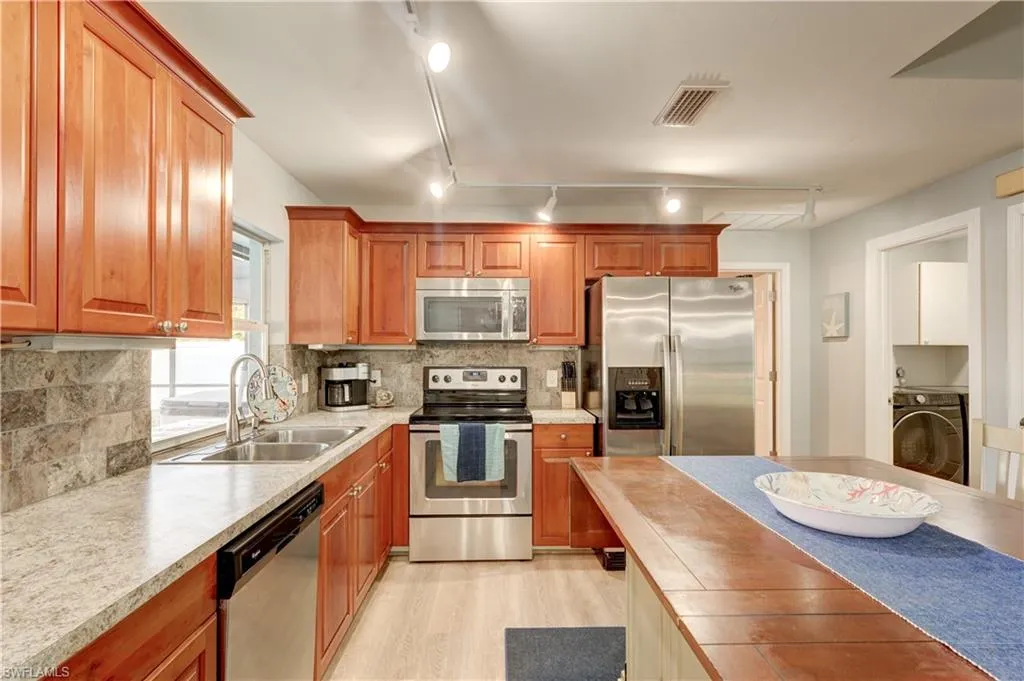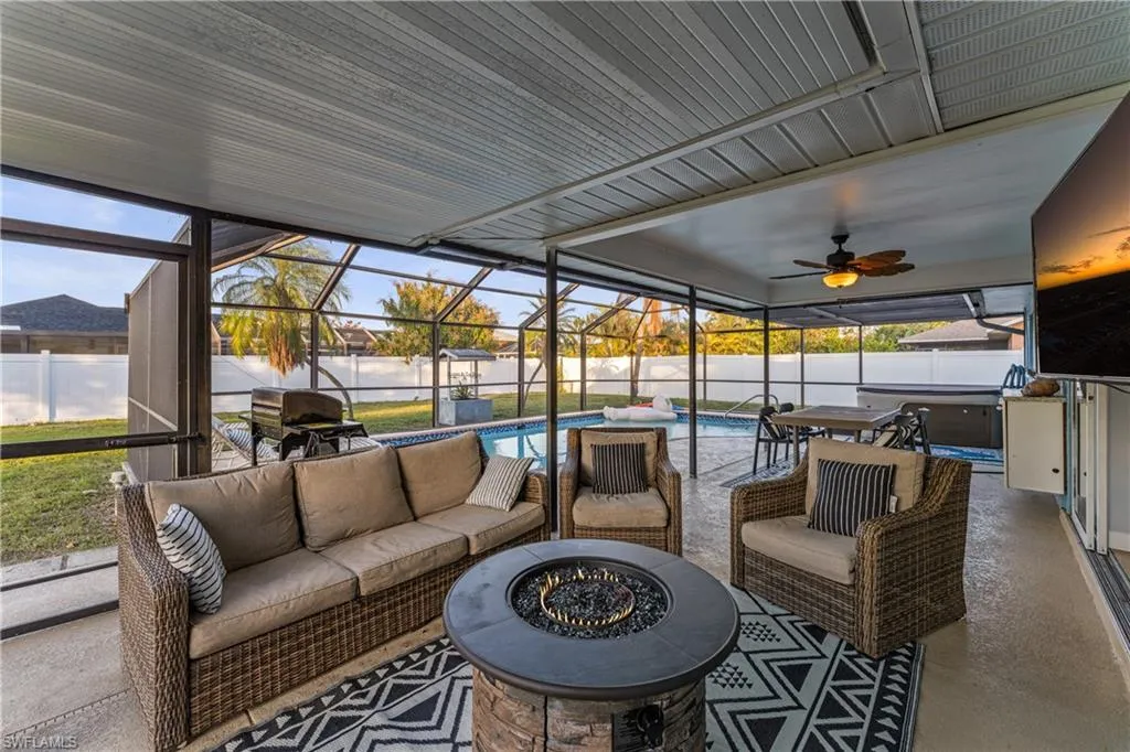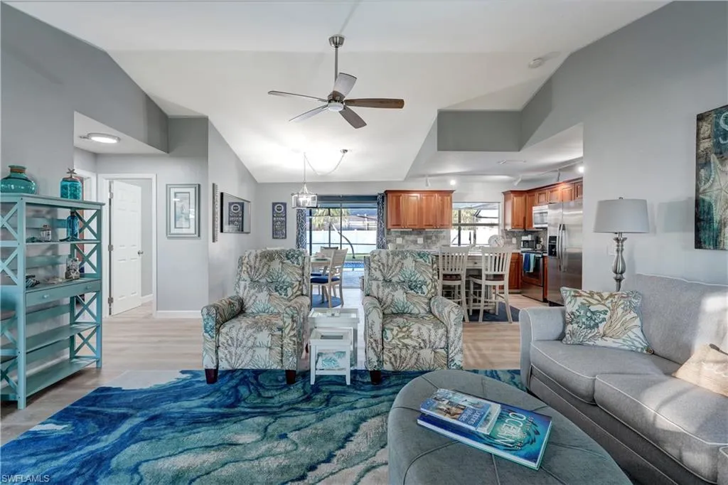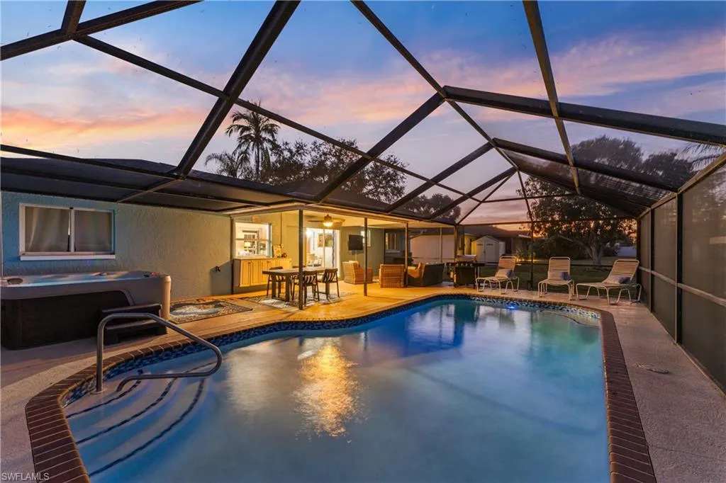 Turnkey Pool Home with Jacuzzi. A Successful Vacation Rental to offset your expenses of Owning a Piece of Paradise! Step into this beautifully designed and decorated 3-bedroom, 2-bath pool home with a stand-alone jacuzzi, perfectly located in the heart of Cape Coral. Featuring an open-concept floor plan, stylish finishes, and comfortable furnishings, this property is being sold turnkey. Ready for your enjoyment or to continue as a proven income-producing vacation home with upcoming revenue in place. Enjoy peace of mind with a new roof (2023) and a completely resurfaced pool featuring a new heater and updated equipment. The interior offers luxury vinyl plank flooring, carpeted guest bedrooms, and an open kitchen with stainless steel appliances. Conveniently located close to restaurants, shopping, and entertainment, and less than an hour to Southwest Florida’s beautiful beaches and airports, this home combines comfort, convenience, and investment potential. Florida living at its best!