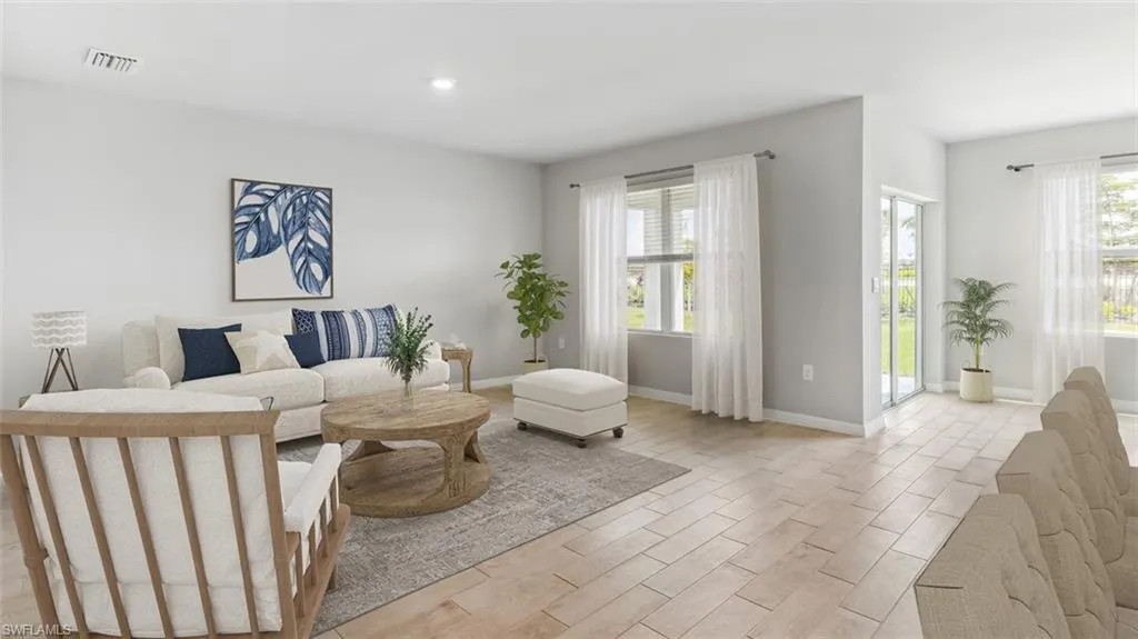 WELCOME TO YOUR NEW DR HORTON HOME!! This is our appealing one-story, open concept, 1672 sqft ARIA Floorplan featuring 3 bedrooms, 2 bathrooms, 2-car garage, a covered under-trusses lanai and all concrete block construction. This home is on a beautiful lot located in Cape Coral. This home boasts Designer cabinets and quartz countertops in both the kitchen and baths. Experience the timeless beauty and durability of RevWood laminated wood floors featured throughout the home, modern flat stock trim and baseboards, all stainless kitchen appliances including refrigerator, paver driveways and lanai, irrigation system, and garage door