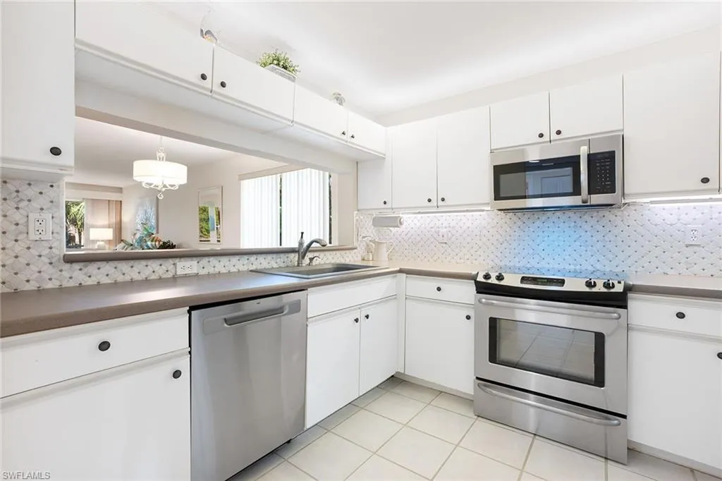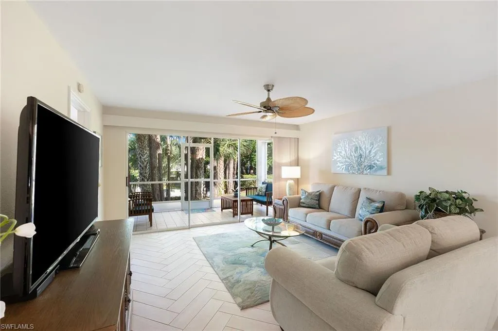 A truly unique opportunity to own this beautifully maintained turnkey 2-bedroom, 2-bath first-floor end-unit condo in sought-after North Naples. Enjoy panoramic views of the lake and surrounding trees from your private screened lanai, with no building next door for added privacy and abundant natural light throughout. Move right in and start living in the Florida lifestyle with newer flooring, a refreshed primary en-suite bath, and modern appliances. The thoughtful split-bedroom layout offers comfort and flexibility for guests or a home office. Set in a welcoming community with tennis and two resort-style pools featuring lap lanes, this condo blends comfort, style, and convenience—close to shopping, dining, and Naples’ pristine beaches.