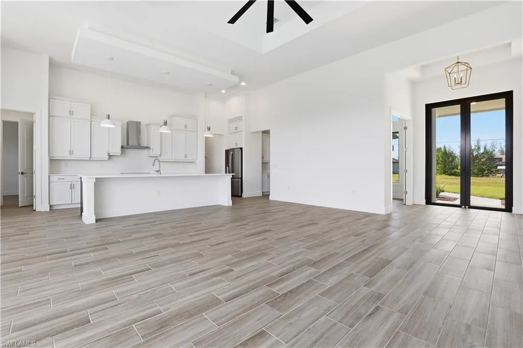 : French Doors, Laundry Tub, Pantry, Tray Ceiling(s), Volume Ceiling, Walk-In Closet(s), Zero/Corner Door Sliders