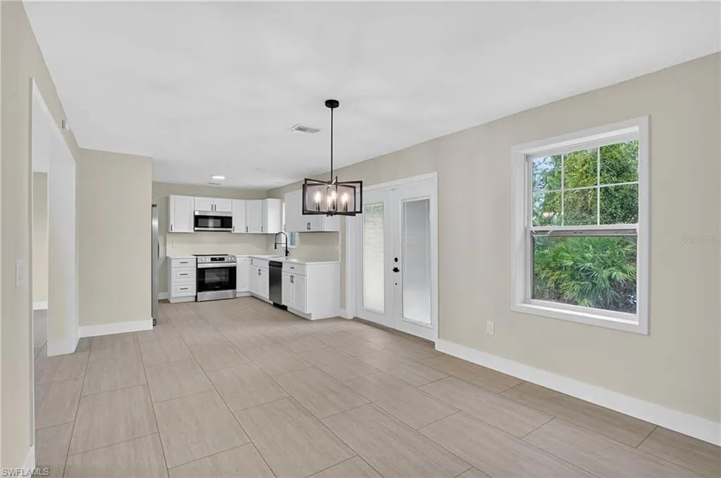 Welcome to this beautifully renovated 3-bedroom, 2-bathroom home located in the sought-after community of Lehigh Acres. Situated on a spacious 0.26-acre lot, this property combines modern updates with inviting charm. From the moment you arrive, you’ll notice the gorgeous curb appeal, manicured landscaping, and welcoming exterior. Step inside to discover brand-new luxury vinyl flooring, stylish light fixtures, and an open-concept floor plan perfect for both everyday living and entertaining. The kitchen is upgraded with stainless steel appliances, quartz countertops, and ample cabinet space. Each bedroom features ceiling fans, large windows, and plenty of natural light. The primary suite offers a beautifully renovated bathroom with a tile-lined shower and updated vanity. With its spacious yard, there’s plenty of room for outdoor gatherings, play, or simply relaxing and enjoying the Florida sunsets.