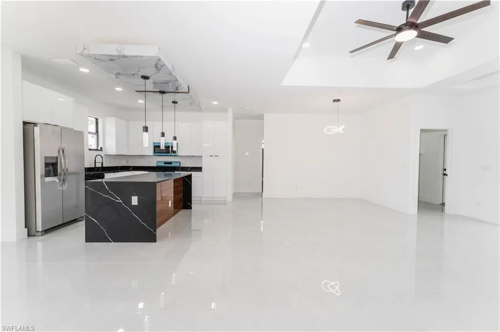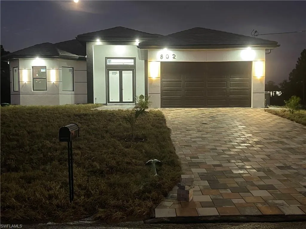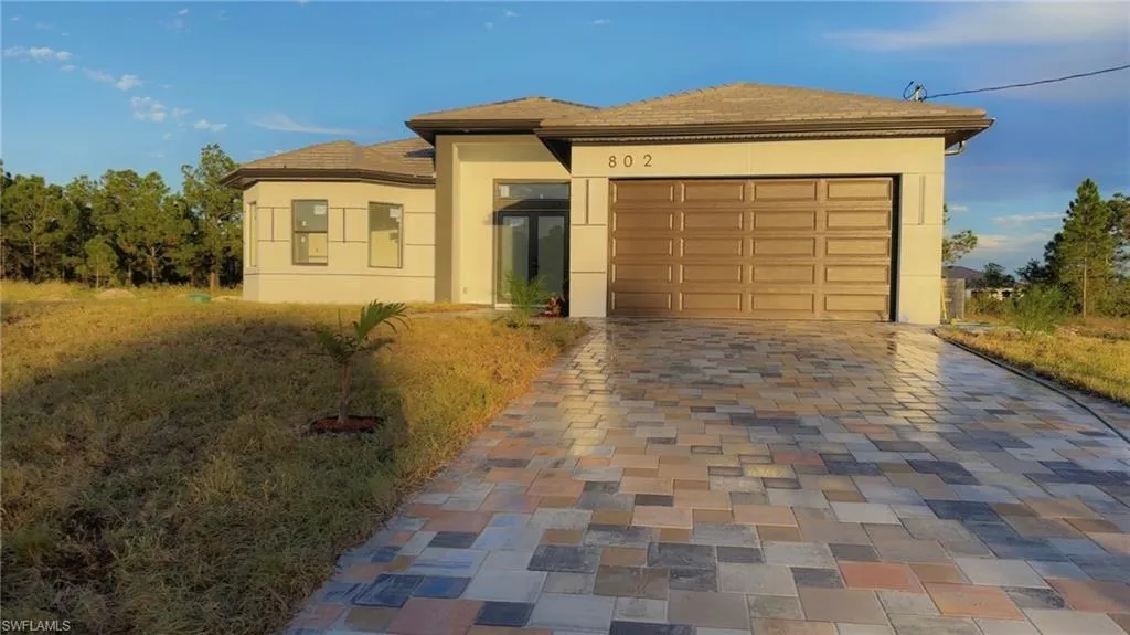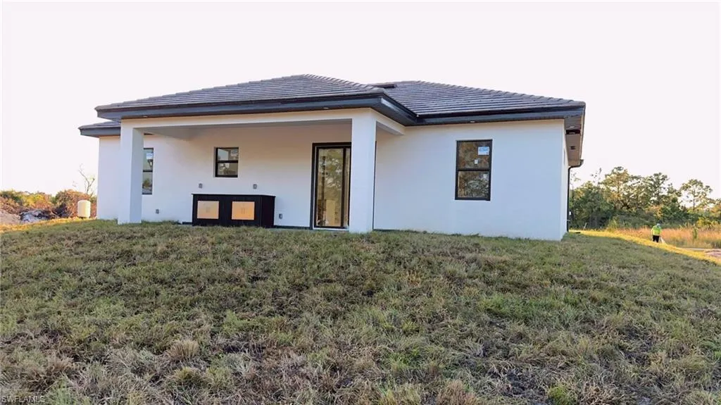 Elegant new construction, 0.50 ACRE LOT featuring porcelain tile flooring throughout. The kitchen and bathrooms are beautifully finished with quartz countertops and modern fixtures. Seller offering up to $20,000 toward buyer’s closing costs and prepaids with an acceptable offer. Enjoy impact resistant windows and doors for peace of mind, a durable tile roof, and an elegant paver driveway that enhances the curb appeal. The spacious covered terrace includes a built-in outdoor kitchen, ideal for entertaining or relaxing during Florida evenings. Located on a quiet dead-end street that offers privacy and tranquility.