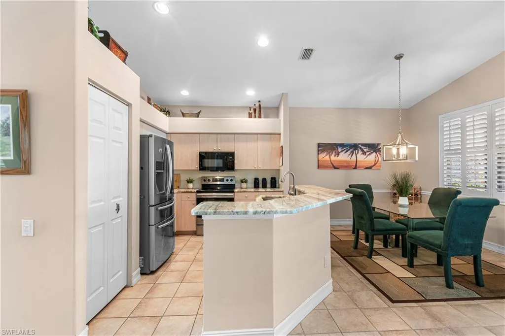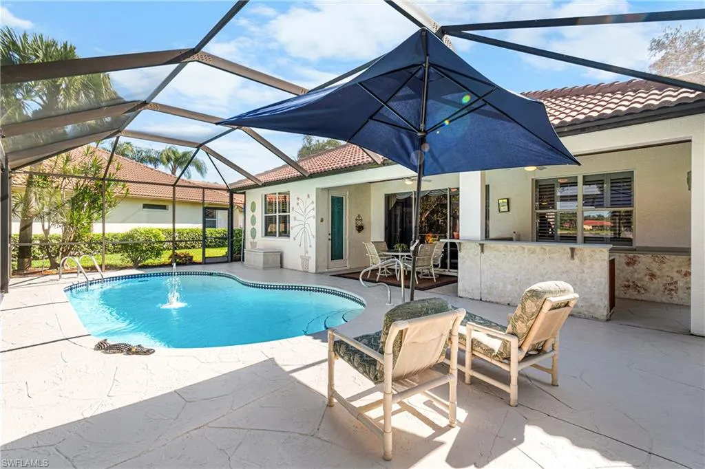 LOCATION, LOCATION! NO FLOOD ZONE! This beautiful home offers the perfect blend of comfort, community, and recreation. Nestled in a lush gated golf community with optional golf and social memberships, ideal for anyone seeking the best of the Florida lifestyle! Driving to this home you will absolutely love all the beautiful treelined streets and lakes! Peaceful and NO traffic noise! Tropical lush vegetation surround you. As you enter this home you are greeted with the stunning lake view. Perfect for family entertaining and dining alfresco, with a built in kitchen area that includes a small refrigerator, Jenn Air grill with plenty counter space for entertaining by the pool for special gatherings. Newly finished wood paneled patio ceiling, and newer picture screened lanai welcomes a stunning lake view. The kitchen offers newer granite countertops, and stainless steel appliances, laundry tub & side garage entry. The Club at Gateway offers an exceptional lifestyle with a wealth of amenities. Golf enthusiasts will appreciate the renowned Tom Fazio- designed championship course, complemented by world-class practice facilities. Beyond golf, residents enjoy a stunning clubhouse featuring lobby with wine cellar, formal and casual dining rooms, patio dining, outdoor pool bar and patio area to eat alfresco by the pool, offering perfect afternoons with the family with a lap pool and umbrella covered play area for children. Second floor state of the art staffed fitness center overlooking the practice greens and lakes, with water aerobics, spinning classes, yoga, with private training, and massage appointments. Sport enthusiast -Golf, Tennis, pickleball, and bocce ball cater to various interest, with the club’s active social calendar ensures there’s always something to for everyone! The Club at Gateway provide optional golf & social memberships for all residents. 24 hour monitored security. Convenient to RSW airport , Gulf Coast Town Center, restaurants, shopping and hospitals!, & nearby I -75 not to mention all the local restaurants on Gateway Blvd and nearby Publix grocery stores, nail and hair salons, Veterinarian, Dance studio, Rize Craft Coffee & Patisserie! Gateway spans over 3,000 acres includes both residential and business parks, restaurants and more! This vibrant gated golf community welcomes all who appreciate and active, social and relaxed way of life . Weather you’re drawn to the golf course, fitness options, or simply peaceful surroundings, this home is the one for you! Schedule your appointment today! Callaway Greens is tucked away from all the main streets! ( Roof age 2017, New AC 2025, Water heater 2018, Picture Screen added 2025, Patio ceiling wood paneling 2025, Resurfaced Patio and Driveway 2019, Brand new pool heater system 2025, wood laminate flooring main bedroom & den 2023, new quartz counter tops in kitchen 2022, Plantation shutters , all new smoke detectors, new entry light chandelier.