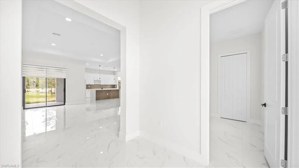 Experience the best of new construction in a flourishing area of Lehigh Acres! This stunning 4-bedroom, 2-bathroom home features a bright and airy open-concept kitchen, perfect for entertaining. The kitchen boasts elegant wood cabinets, pristine quartz countertops, and a full suite of brand-new stainless steel appliances. Enjoy the Florida sunshine and ultimate peace of mind with impact windows and doors throughout. With gorgeous porcelain tile underfoot and zero updates needed, this move-in-ready home offers the perfect blend of modern style and effortless living. Schedule your private showing today!