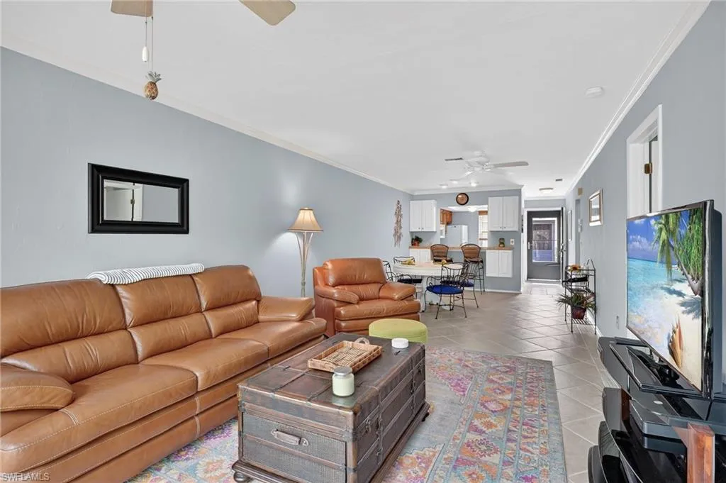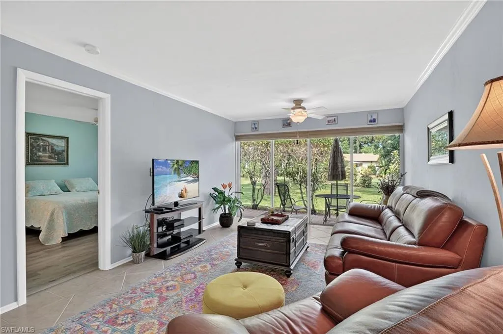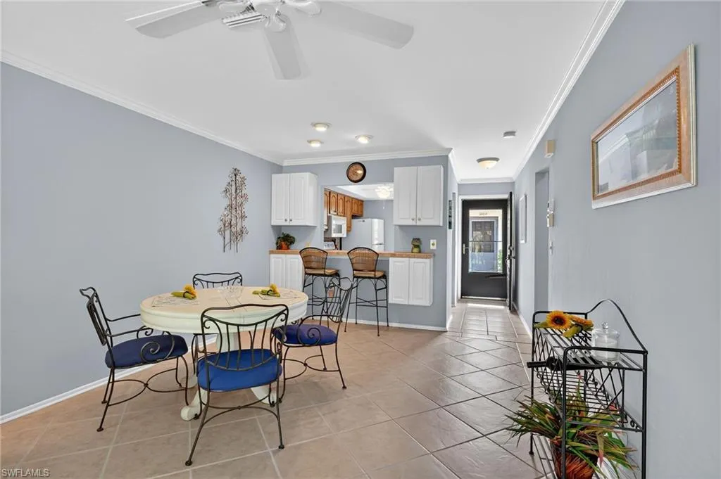 PRIME LOCATION!. Minutes to everything. This Ranch style 2 bdrm Condo has been very well cared for with owners using sparingly throughout the year. The lanai was opened up to give more living area under air. Feels like a home, no one above you. New roofs 2022, W/H 2022 and air conditioning 2017. All new Hurricane impact windows 2025, new luxury vinyl flooring recent in both bedrooms, tile thoughout all other areas, crown molding in Entry and main living area plus Stackable laundry. Relax on the outdoor patio, landscaped lawn views. Ready to move right in. TURNKEY. Big bonus is good-sized storage great for beach chairs, grill or bikes. Carport parking steps away from yr front door, make this SW florida your next place in paradise.