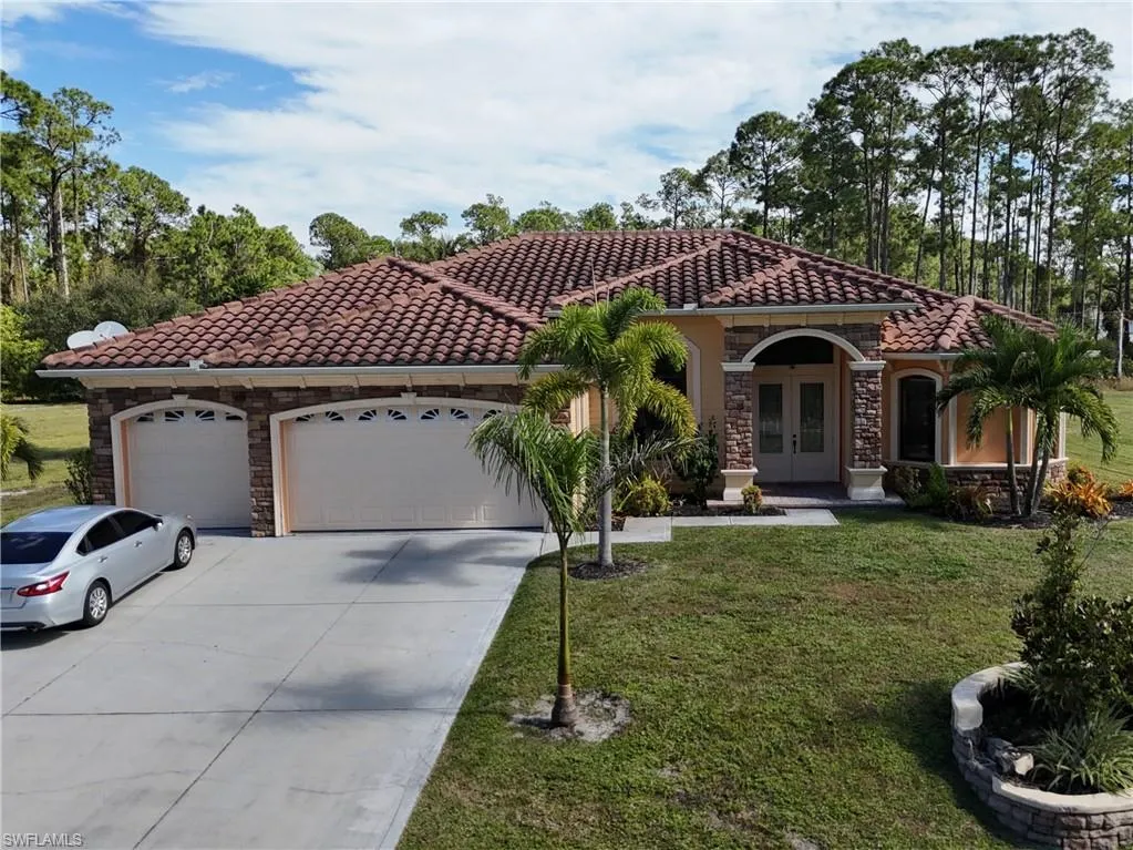 Here is what you have been looking for as your dream home, this stunning 3 bedroom, 4 bathroom home is definitely for you, every detail of this home has been thoughtfully designed for comfort and elegance. The entire house features chrome molding finishes, LED ceiling décor, and the garage includes a side door leading to the patio, as well as a small storage room, perfect for any project or future ideas you may have for the garage. Each of the spacious bathrooms features extended granite vanities, oversized mirrors, and beautifully tiled showers that reach all the way to the ceiling for a luxurious spa like feel, also the 4th bathroom is perfect for visitors leaving each other bedroom to have their own separate private bathroom, home is also featuring a spacious 3 car garage and over 2,300 sq. ft. of living area. Built in 2019, this property combines modern construction with timeless elegance. The exterior showcases beautiful brick and stone accents, adding a touch of sophistication and curb appeal. Inside, you can find refined details throughout, including elegant crown molding and high quality finishes, Huge Kitchen with spacious granite counter, tall cabinets, stainless steel appliances, 2 ovens, a stainless steal range hood, that make this home truly stand out. The open floor plan and natural light create a bright and inviting atmosphere house features a lot of impact windows, and some transom windows in some of the rooms, perfect for both everyday living and entertaining. The laundry room offers both style and functionality, with granite countertops, extra cabinetry, and plenty of workspace for added convenience. The exterior of the home showcases a beautifully landscaped garden with well maintained plants that perfectly complement the elegant finishes of this stunning property. The back lanai features a beautiful paved floor and multiple access doors to the house, and it’s also prepped with connections to install an outdoor kitchen if desired. Situated on 2 acres of cleared land, this property offers endless opportunities. Originally sitting on a half acre lot, the owner purchased the adjoining parcels, now totaling three additional half acre lots, giving you room for future projects, a pool, extra parking, or even the potential to build additional homes because each parcel has their address. Right next door you will find a scenic canal, perfect for relaxing, or simply enjoying the peaceful Florida lifestyle, it is a space for endless outdoor fun. This Property is located in a rapidly growing area near sunshine and lee blvd, with plenty of shopping centers, and even more developments coming soon… offering convenience, privacy, and incredible value. Just a short drive to nearby beaches, restaurants, schools highway I-75 and 82 Road, is also not located in a flood zone, it’s rare to find a property with this combination of elegance, size, flexibility and price.