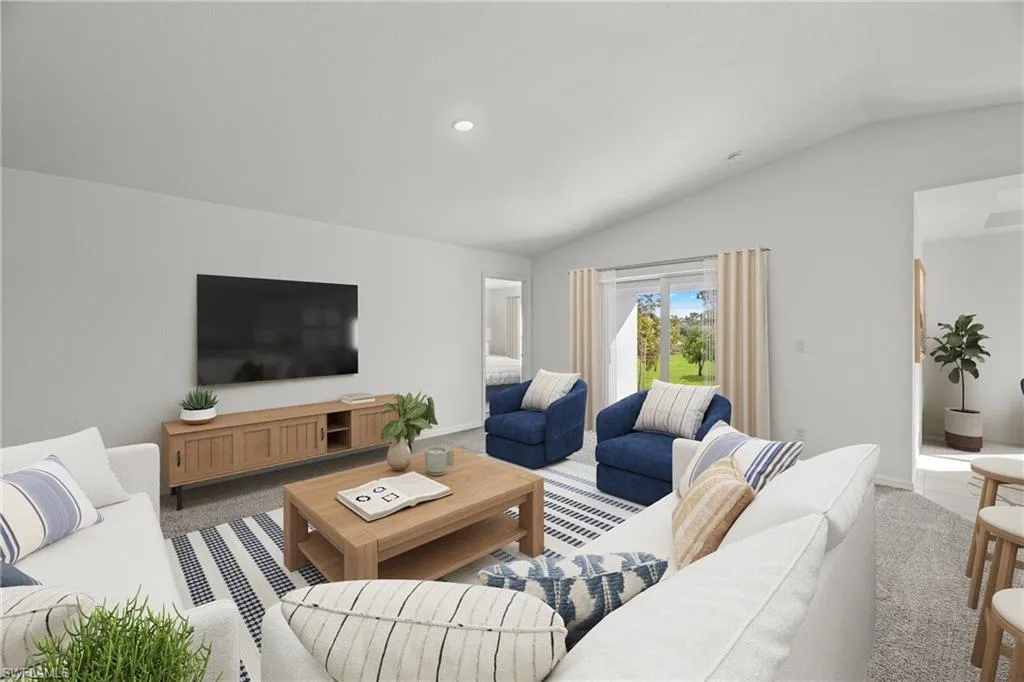 NEW CONSTRUCTION WITH WARRANTY! Estimated delivery December 2025. The Gasparilla offers the perfect blend of comfort, style, and functionality with 1,810 square feet of thoughtfully designed living space. This open-concept home features 4 bedrooms, 2 baths, and a spacious Great Room under a vaulted ceiling that seamlessly connects to the kitchen, dining area, and covered lanai — ideal for entertaining or relaxing. The modern kitchen is beautifully appointed with quartz countertops, a complete stainless steel appliance package, and a large island that provides additional seating and prep space. Elegant plank tile flooring flows throughout the main living areas, adding both warmth and durability. The private Primary Suite offers a walk-in closet and a luxurious bath with double sink quartz vanity and a walk-in shower. Three additional bedrooms provide flexibility for family, guests, or a home office. A dedicated laundry room and a spacious 2-car garage complete this exceptional home. Pictures, virtual tour & renderings are of similar home & are used for display purposes only – features have been upgraded in this home (please see photos).