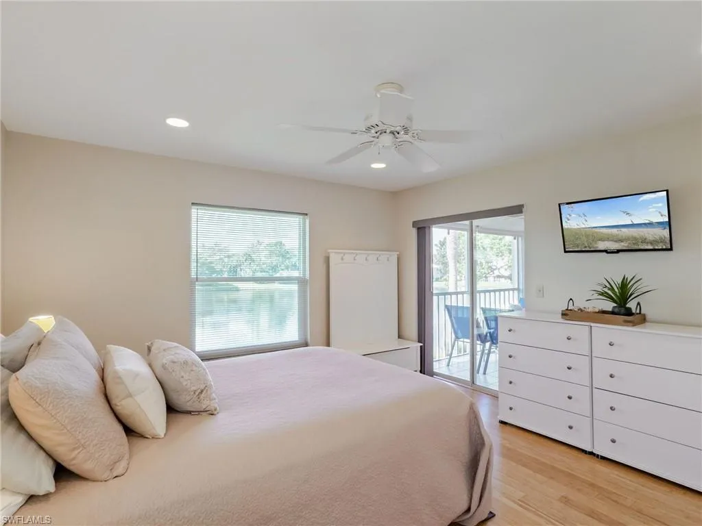 Everything you love and enjoy about the Naples lifestyle is in this home and close proximity to Vanderbilt Beach and Mercato! This beautiful 2nd story property is immaculately maintained, offers abundant light as an end unit with high ceilings and no carpet. Over 1500 sq ft of living space with a southern exposure from the lanai. The screened lanai overlooks the pond with fountain and is a perfect relaxing spot to enjoy morning coffee or evening sunsets surrounded by lush tropical landscaping. INCLUDES impact glass windows and roll down hurricane shutter for the lanai for easy lock up! You will also enjoy the updated kitchen, plumbing, and bamboo flooring. Water heater is less than 1 year old.