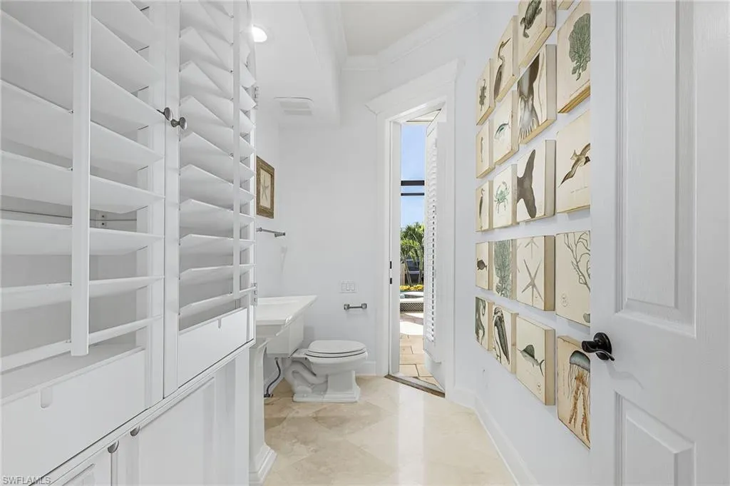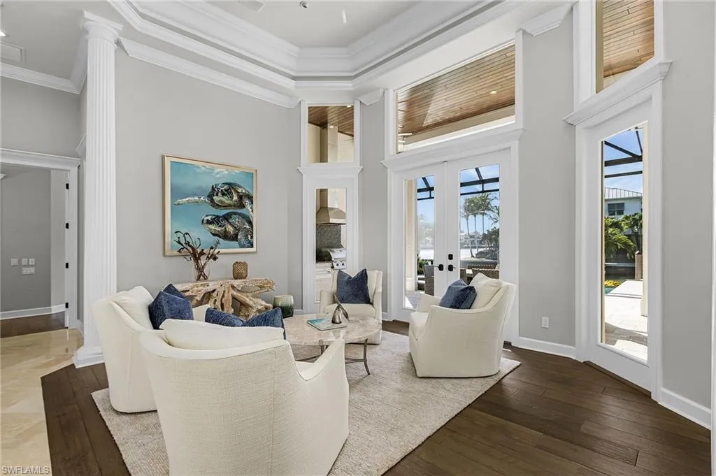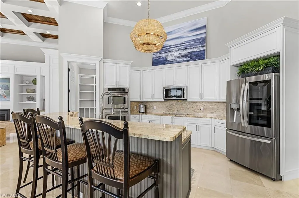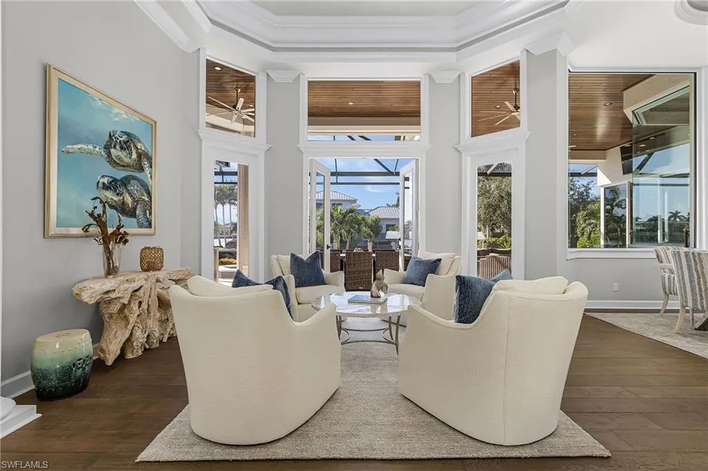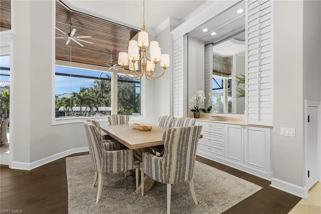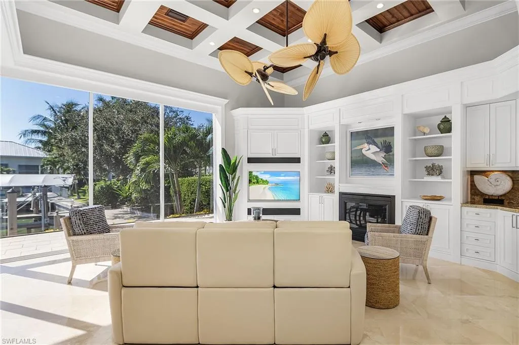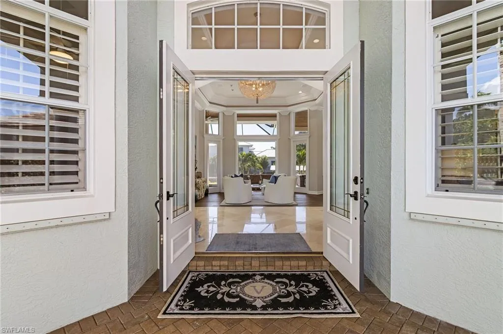 Exquisite Waterfront Estate on Roberts Bay in Marco Island with direct Gulf Access and southern exposure. Welcome to your own slice of paradise on Marco Island’s most desirable waterfront locations. This lavish waterfront residence offers panoramic canal and wide water views with immediate deep water access to the Gulf of America through Caxambas Pass, no bridges required. A true boater’s dream, this home delivers luxury, comfort, and coastal elegance in every detail, where dolphins, manatees, and tropical fish are your daily neighbors. Step through the grand double doors and be greeted by a dramatic wall of windows framing the sparkling infinity-edge heated salwater pool and spa, blending the beauty of the bay beyond. The open concept design fills the home with natural light, while coffered ceilings, custom built-ins, plantation shutters, and Vietnemese hardwood and marble floors showcase timeless craftsmanship and style. This 3-bed +den, 3.5-bath home with a 3-car garage is designed for island living. The chef’s kitchen takes center stage with granite countertops, a spacious island, stainless steel appliances, walk-in pantry with pullouts, breakfest nook, and built-in desk all oriented to capture magnificient waterfront views. Every bedroom offers walk-in closets, ensuring ample storage and comfort for family and guests. Entertain with the zero-corner sliding doors that open completely to a spectacular outdoor living area. Under the warm glow of a rich hardwood ceiling, you’ll find an outdoor kitchen with bar, built in grill, and TV, perfect for al fresco dining, big game party, or relaxing evenings watching boats glide by. The expansive lanai features multiple seating and dining areas, creating an ideal setting for gatherings large or small. Outside, the boater’s amenities are second to none! With 136 ft of seawall, wraparound dock, 60-ft yacht slip with tide guides, covered 13,000-lb boat lift, captain’s walk, and 50-amp shore power with water plus a fish cleaning station, this private dock is built to accomodate vessels of all sizes. Launch your boat for a day of fishing or a sunset cruise straight to the Gulf-no bridges, no limits! Added highlights: remote-controlled hurricane shutters across lanai, two underground propane tanks servicing the pool heater, outdoor grill and indoor fireplace, central vacuum system, and no HOA. The primary suite offers a private retreat with lanai access, a spa-inspired bath with dual sinks, jetted tub, and walk-in shower, and a large safe discreetly placed in main closet. The laundry room includes an ice machine, second fridge, and side entry to a screened porch leading directly to the dock – perfect for storing fishing, scuba, or kayak gear, doubling as a flex space for your pets, hobby area, or garden workspace. From the sunrise reflections on the bay to tranquil evenings by the infinity pool this residence captures the very best of coastal Florida living. Welcome home to Marco Island.