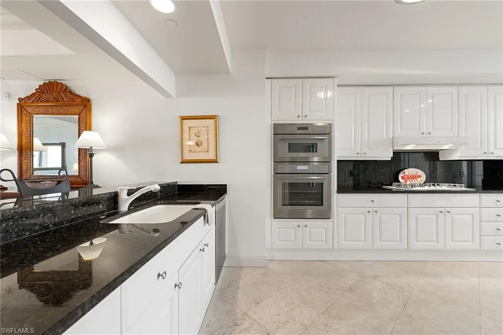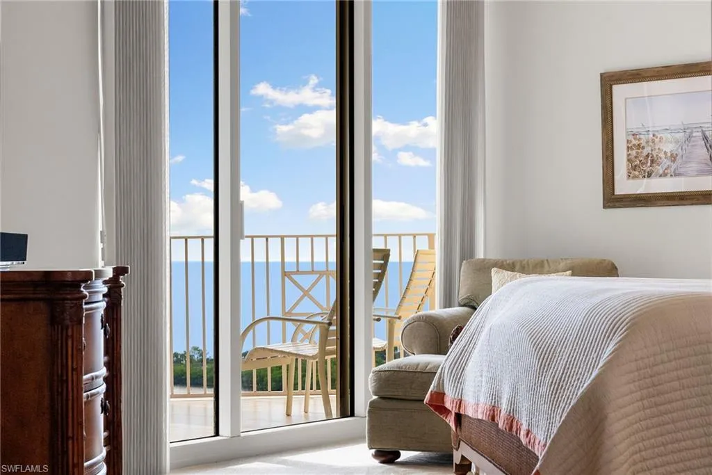Nestled on the 19th floor of the iconic Cap Ferrat in Pelican Bay, 6597 Nicholas Blvd #1902 commands sweeping Gulf of Mexico and mangrove vistas that unfold like a living masterpiece. This refined three-bedroom, three-bath sky residence harmonizes timeless elegance with effortless sophistication, spanning generous interiors adorned with natural stone flooring, soaring tray ceilings, and a grand double-door entry featuring exquisite custom inlay. The heart of the home is a chef’s kitchen, elegantly appointed with pristine white cabinetry, gleaming granite countertops, a professional gas cooktop, and a charming breakfast nook framed by mesmerizing water views. Flowing seamlessly into the expansive open living and dining areas, it creates an inviting canvas for intimate gatherings or lavish entertaining. Retreat to the serene primary suite, where private balcony access invites Gulf breezes, and the spa-like bath indulges with dual vanities, a jetted soaking tub, and a seamless walk-in shower. Two additional guest bedrooms—each with its own balcony—offer tranquil havens for family or visitors, ensuring privacy and comfort. Evenings come alive on the expansive covered lanai, where vibrant sunsets and gentle sea whispers promise unforgettable moments. 2 Parking Spots also come with unit. Cap Ferrat’s resort-caliber amenities include 24-hour security, staffed gate and concierge, a state-of-the-art fitness center, resort-style pool and spa, health club, saunas, steam rooms, massage suites, and two secured under-building parking spaces. Beyond lies the unparalleled Pelican Bay lifestyle: exclusive access to two private beach pavilions with indoor/outdoor dining, attendant-served beach lounges and umbrellas, Har-Tru tennis courts, and a community center boasting cutting-edge fitness, spa, and tennis facilities—all enveloped within 570 acres of pristine mangroves and scenic boardwalks. This is coastal luxury, perfected.