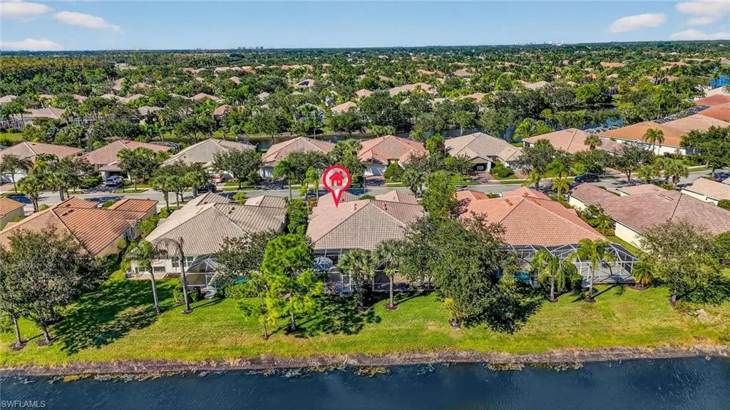 Come LIVE PLAY & RELAX in the amazing community of VillageWalk of Bonita. This desirable and rarely available Carrington floor plan is an attached villa with 3BR 2BA and a 2-car garage. You will love the private backyard oasis with its extended lanai that overlooks a stunning lake view, the perfect spot to relax in the hot tub, soak up the sun, host barbeques and entertain all your family and friends while enjoying our beautiful weather. Natural light fills the home through a glass front entry and numerous windows adorned with plantation shutters. The vaulted ceiling and Florida-inspired color palette create a bright, open atmosphere. The kitchen is nicely appointed with wood cabinets, a single bowl sink with a hands-free faucet, white appliances and functional Quartz countertops. Owners’ suite is generous in size, features a walk-in closet, a stylish bath with a Quartz countertop and a convenient walk-in shower with frameless shower door. Laundry has convenient storage shelves and handy utility sink. Enjoy peace of mind with easy-to-use hurricane protection, including electric and accordion hurricane shutters. Plus, a brand-new HVAC installed in 2024 ensures your comfort all year round. Xenon is just a short walk, bike or golf cart ride to the amenity rich town center that offers something for everyone: resort style & lap pools, 24/7 fitness center, lighted Har-Tru tennis courts, pickleball center and bocce all with active leagues. In addition, there is a lighted basketball court, tot lot, full-service restaurant w/indoor and outdoor dining, beauty salon, bagel shop, spa, ice cream shop, and lots of planned activities by the full-time activities director. VillageWalk of Bonita is unique with it’s pretty butterfly gardens, miles of lakes, sidewalks, walkways over connecting bridges and impressive wildlife. It’s a great location to our beautiful sandy beaches, SW Florida International Airport, shopping and entertainment destinations. Guard gated, golf cart and pet friendly. Make your showing today as this is Florida Living at its best and the perfect place to call home!