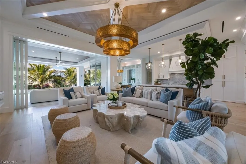 Experience the epitome of luxury living in this exceptional new construction home, perfectly situated in the heart of Olde Naples. Crafted by Refined Builders, this remarkable residence presents a rare opportunity to own a true masterpiece in one of Naples’ most coveted locations. Ideally positioned just minutes from the world-class dining and shopping of 5th Avenue South and 3rd StreetSouth, as well as Naples’ iconic beaches, this 4-bedroom + den, 5.5-bath home offers the perfect blend of luxury, comfort, and convenience—complemented by tranquil lake views from the 2nd floor and lush tropical landscaping. Wide-plank European oak floors and tongue-and-groove ceilings set a sophisticated tone, while the expansive great room flows seamlessly into a stunning gourmet kitchen featuring a quartz-clad center island, sleek two-tone cabinetry, and a full suite of premium Thermador appliances—ideal for both everyday living and elegant entertaining. Sliding glass doors lead to your private outdoor sanctuary, complete with a resort-style saltwater pool and spa, custom summer kitchen, and a spacious covered lanai—perfect for seamless indoor-outdoor living. The first-floor primary suite is a luxurious retreat with direct pool access and a spa-inspired bath featuring a soaking tub, oversized walk-in shower, and dual vanities. Upstairs, three ensuite guest bedrooms—including a VIP second master—are accessible via stairs or a private elevator. A bonus living room with wet bar, scenic balcony, and captivating lake views provides a relaxed space to unwind or entertain. Additional highlights include dual laundry rooms, a 3-car garage, tankless water heater, whole-house generator, and propane tank.
