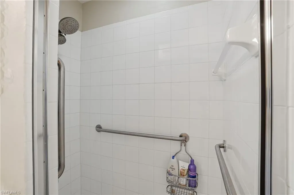 The primary bedroom also overlooks the lake and offers private access to the lanai, and the ensuite bath includes dual walk-in closets, a double vanity with upgraded cabinetry and counters, and a large walk-in shower.