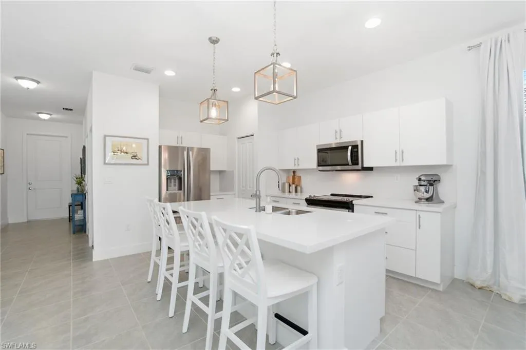 The modern all-white kitchen features quartz countertops, upgraded appliances, and a thoughtful convenience package that maximizes storage. The primary suite offers a sleek frameless shower and plenty of space to unwind. Hurricane impact windows throughout provide safety and peace of mind.