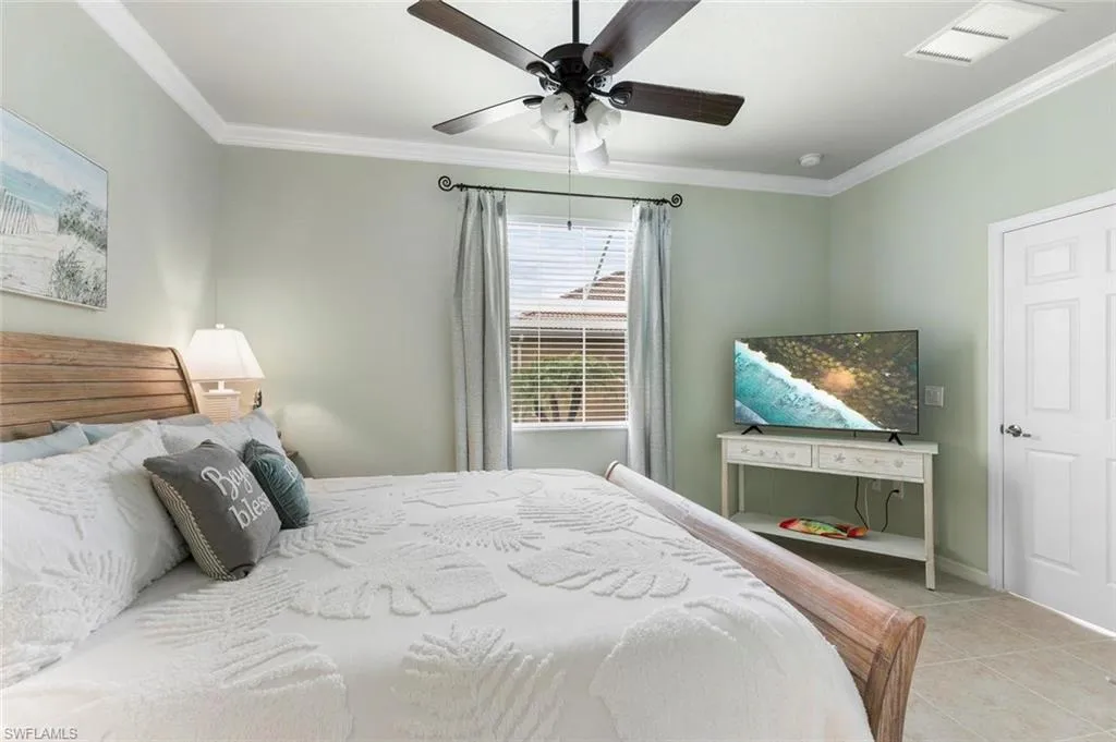 Located in the highly coveted Reflection Lakes community, this stunning lakefront 3-bed, 2-bath villa perfectly blends style and functionality. Step inside to discover an open floor plan, highlighted by elegant crown molding and neutral tile flooring—a perfect blank slate ready for your personal touch. The highlight of this home is the spacious screened lanai, complete with a private pool installed in 2022, offering the perfect backdrop for outdoor relaxation or entertaining. Move right in as this home comes fully furnished with new, modern furniture, allowing you to embrace the relaxed Florida lifestyle from the moment you arrive. The chef-inspired kitchen is equipped with stainless steel appliances, granite countertops, a pantry, and an island—ideal for hosting family and friends. One of the guest bedrooms features a versatile Murphy bed system that seamlessly transforms into a desk, optimizing both space and functionality. Reflection Lakes boasts resort-style amenities including a sparkling pool and spa, a clubhouse, low HOA fees, and no CDD fees. But that’s not all! Its prime location puts you just minutes from pristine Gulf beaches, downtown Naples, and the iconic Naples Pier. Don’t miss this rare opportunity to enjoy the best of the Florida lifestyle. Schedule your showing today and make this lakefront villa your new home!