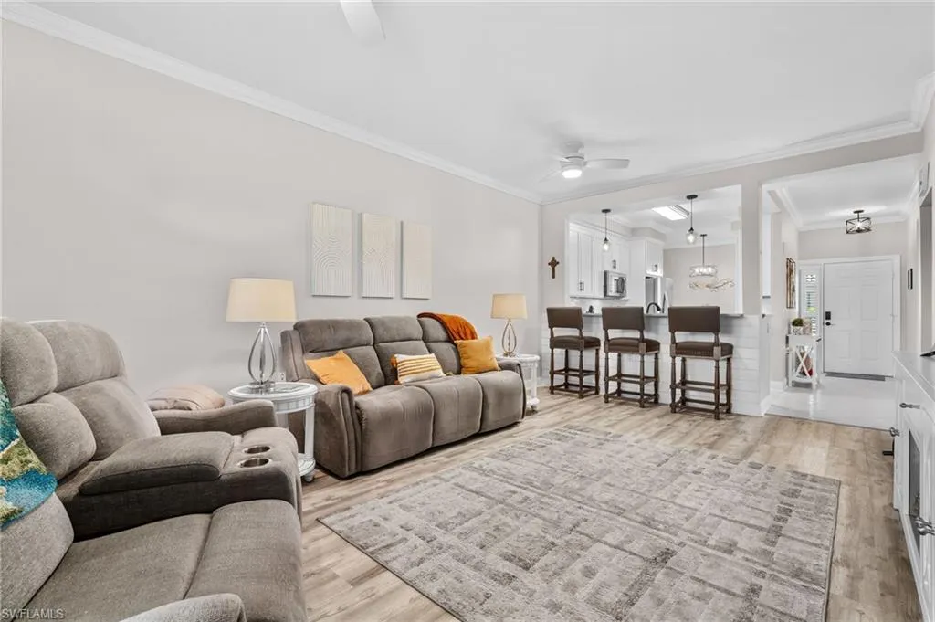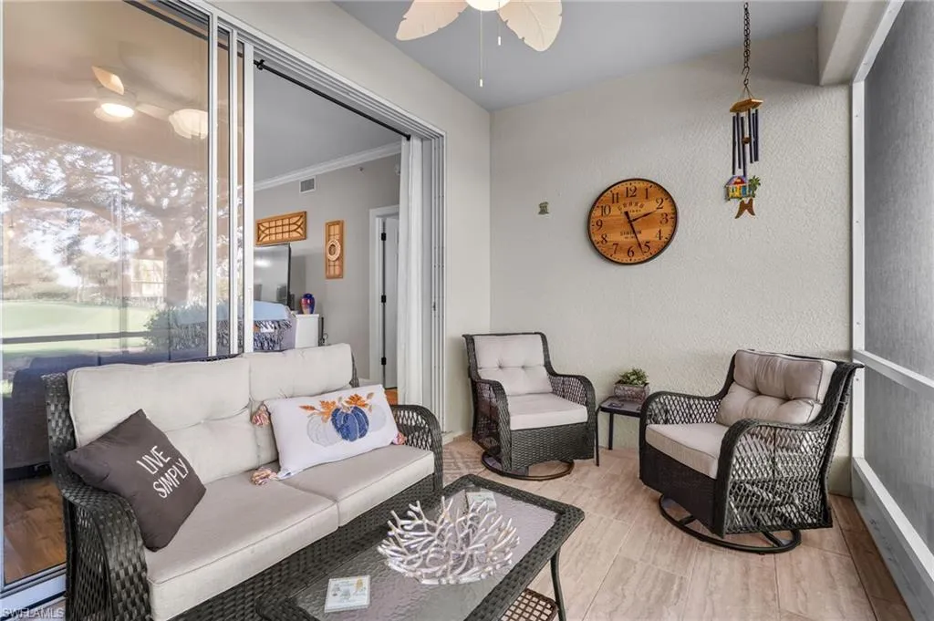 GOLF & LAKE VIEWS – UPDATED INTERIOR – BUNDLED GOLF MEMBERSHIP INCLUDED! Welcome to this beautifully updated first-floor condo in the highly sought-after Forest Glen Golf & Country Club, offering a bright open floor plan and peaceful views of the 6th green and lake. This move-in-ready home features granite countertops, upgraded wood cabinetry, crown molding throughout, extended shelving in the primary closet, and blending comfort and functionality. The spacious primary suite offers dual sinks and a tiled walk-in shower, while the screened lanai is the perfect spot to relax and enjoy the serene surroundings. Numerous updates include freshly painted walls (2021), new kitchen cabinets, countertops, and sink (2022), new ceiling fans, light fixtures, crown molding, and baseboards (2022), new door hardware (2023), updated bath fixtures, shower floor, and bench (2023), new kitchen appliances and water heater (2024), new lanai tile and screen (2024), and a new heating and cooling system (July 2025). Residents enjoy a vibrant lifestyle in this member-owned, debt-free bundled golf community featuring an award-winning Arthur Hills–designed course, renovated clubhouse with poolside bar & grill, member pub, tennis and pickleball courts, fitness center, nature trails, and year-round social events. Perfectly located near downtown Naples, world-class beaches, shopping, and fine dining, this condo offers the best of Florida resort living.. THIS PROPERTY QUALIFIES FOR A 1% LENDER INCENTIVE IF USING PREFERRED LENDER, INQUIRE FOR MORE DETAILS**