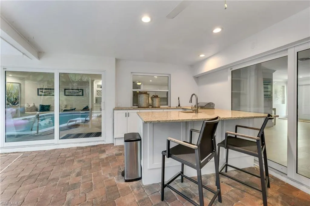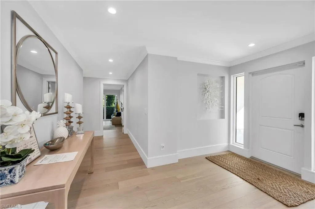 Experience coastal luxury at its finest in this stunning remodeled home in Naples’ elite Park Shore neighborhood. The smart split floor plan features 4 bedrooms, 3 baths, and a sunlit open-concept hub that flows effortlessly to the outdoors. Nestled on a serene, non-cut-through street, this property enjoys a rare sense of privacy and calm. Designer Susan Gregory’s masterful touches shine: wide-plank blond floors, a sleek gourmet kitchen with soft-close white cabinets, quartz counters, top-tier Thermador appliances, glass backsplash, and a massive island bar, prime for hosting! Three spa-like baths feature fresh cabinets, quartz countertops, and chic tiles. Pocket sliders vanish to reveal your private paradise with a shimmering pool, outdoor bar, and tropical landscaping for private resort vibes. Revamped by Connor & Gaskins Unlimited, this hidden gem exudes effortless coastal charm and refined elegance on a serene street, boasting impact windows/doors, a 2019 roof, security cameras, a paver driveway, an epoxy garage, and more. Walking distance to sugar-white beaches, exclusive Park Shore Association private beach access for sunsets and Gulf breezes. Stroll less than a mile to Venetian Bay’s upscale shops and waterfront eateries with bay views. Naples living at its finest.