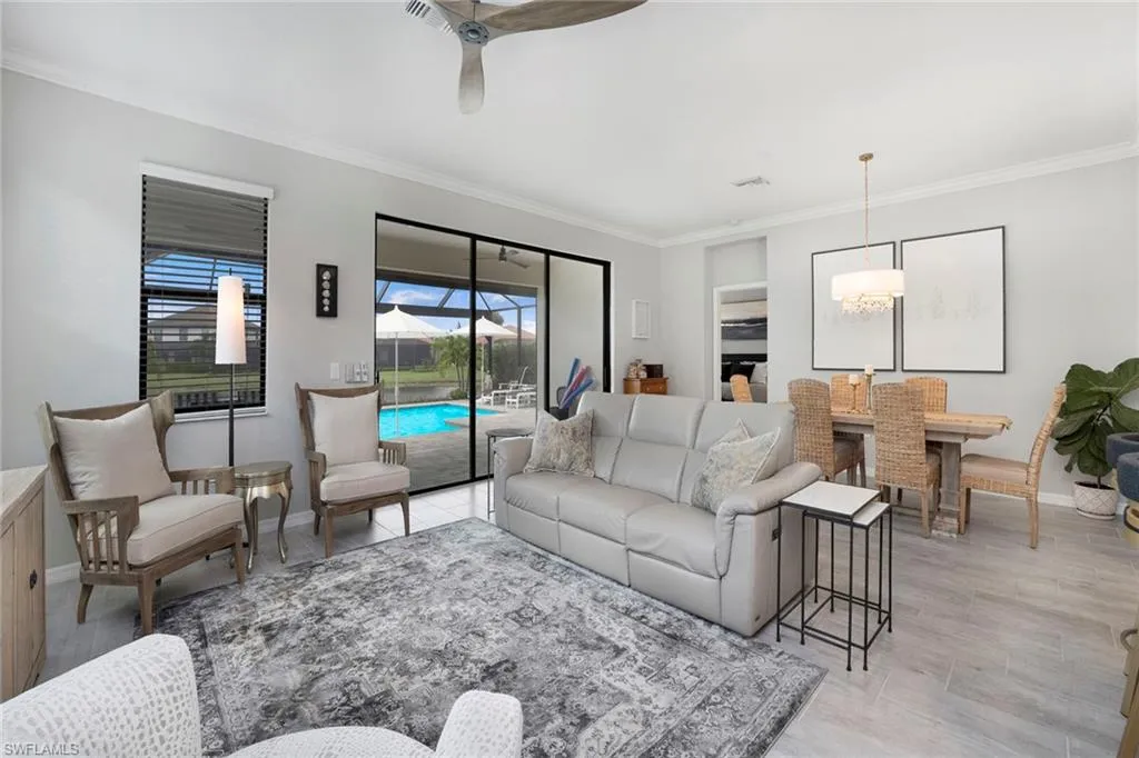 Experience refined living in this immaculate and elegantly appointed Marsala model, offering three bedrooms plus a den (optional fourth bedroom) and three full baths. On a premium homesite, this residence captures stunning lake and nature preserve views, creating a serene backdrop for the most dramatic evening sunsets. Go outside to your private outdoor oasis featuring one of the largest lanais in the neighborhood with an impressive 30 feet deep cage with no-see-um screens. The spectacular 2023 custom-designed pool is the centerpiece, complete with four soothing hydrotherapy body jets and relaxing sun shelf. Inside, the gourmet kitchen is a chef’s delight with an oversized breakfast bar, granite countertops, newer premium stainless-steel appliances, stylish dining chandelier and spacious walk-in pantry. The open-concept layout flows effortlessly into the great room, creating a bright, inviting space ideal for gatherings. The luxurious primary suite offers sweeping lake and preserve views, complemented by a spa-inspired bath featuring dual vanities, large walk-in shower, soaking tub, private water closet and dual walk-in closets. Two additional guest rooms, including a private en-suite with full bath, ensure comfort and privacy for guests. Throughout the home, meticulous upgrades elevate every detail, from upgraded interior door hardware and hinges to elegant crown molding, recessed lighting and stylish tile flooring throughout (no carpet). Valuable upgrades include a Culligan water filtration system, a whole-house surge protector, upgraded electrical for generator hook-up, wall-mounted televisions, window blinds throughout, seven ceiling fans and a well-appointed laundry facility. Additional premium features include hurricane shutters for all windows and doors, a durable epoxy-coated garage floor, heavy-duty storage shelving with 800-pound capacity, and an elegant brick paver driveway and entryway. Artesia is one of Naples sought-after upscale gated communities, known for its luxurious amenities and active lifestyle. The definition of peaceful living, Artesia is along the southern and western edges of Rookery Bay, a protected national estuarine reserve, where the community enjoys a rare kind of serenity surrounded by peaceful nature. Just minutes from beaches of Naples and Marco Island, Artesia offers a boutique setting where natural beauty and convenience meet. The modern clubhouse hosts lively community social events and features a resort-style pool, three pickleball courts, two bocce ball courts, billiards, fully equipped gym and movie theater. Residents also enjoy exercise and craft classes, as well as beautiful lakeside walking path and dog parks. Short drive from downtown Naples and Marco Island, this home offers the best of both worlds like a peaceful, luxurious community and proximity to vibrant local attractions. HOA fee includes cable/internet. No CDD fee. Click link for 3D tour and floor plan.
