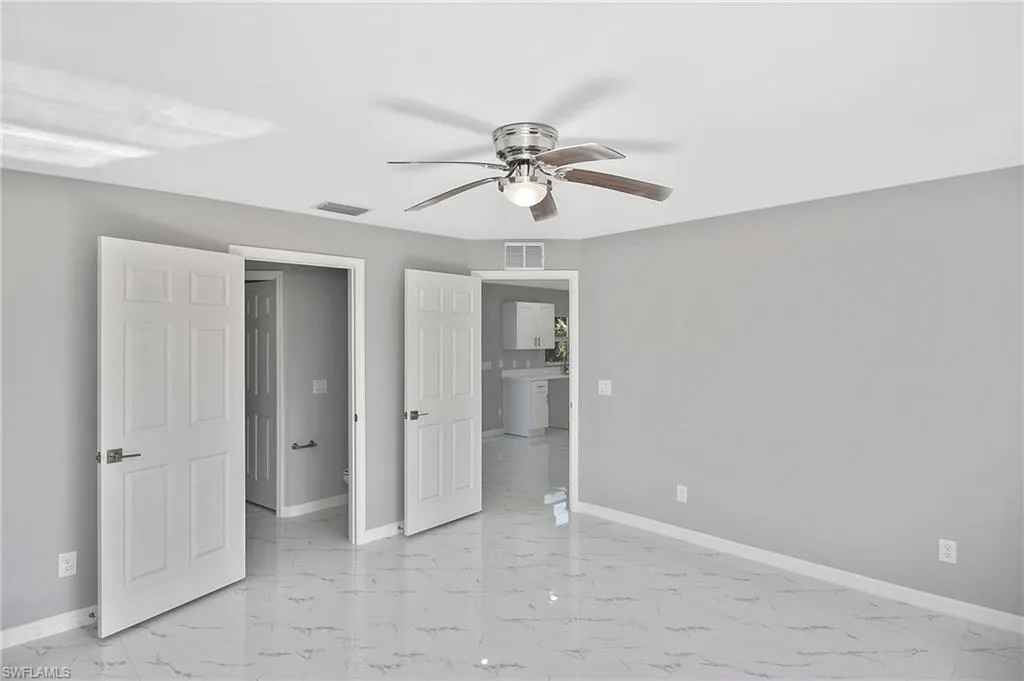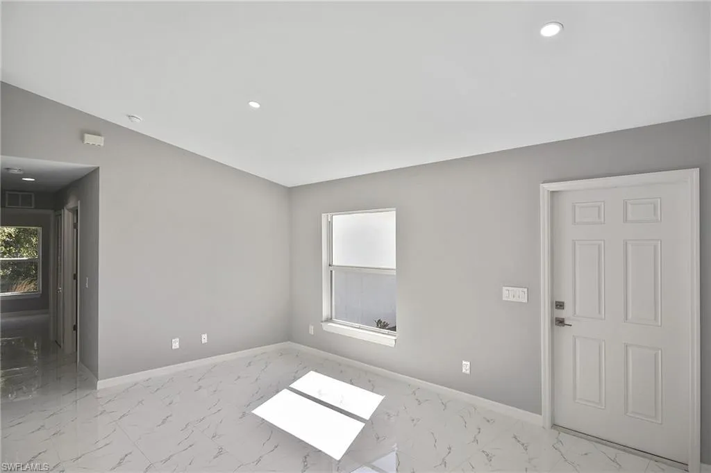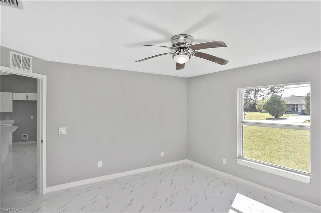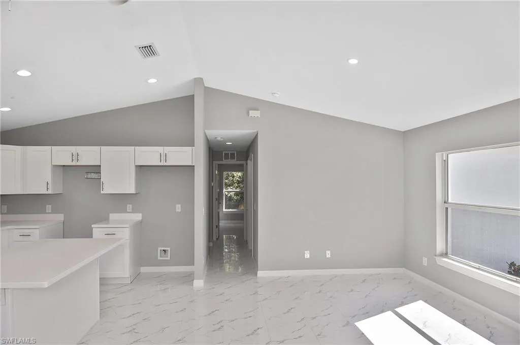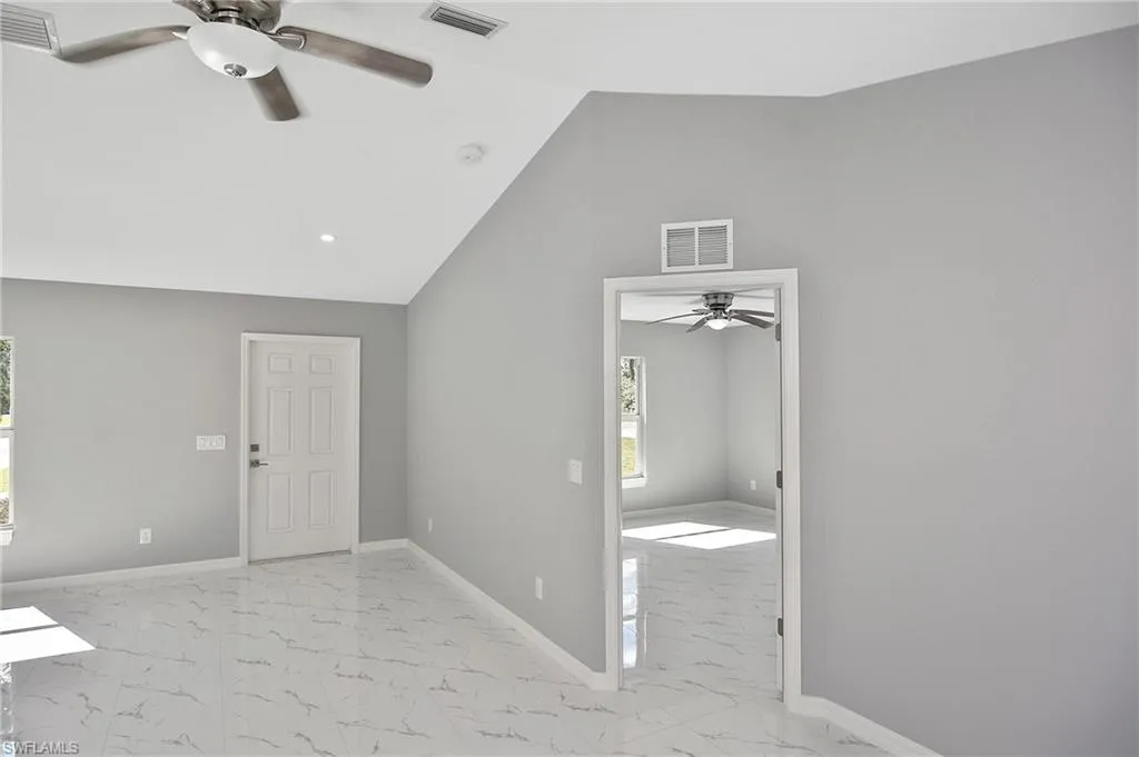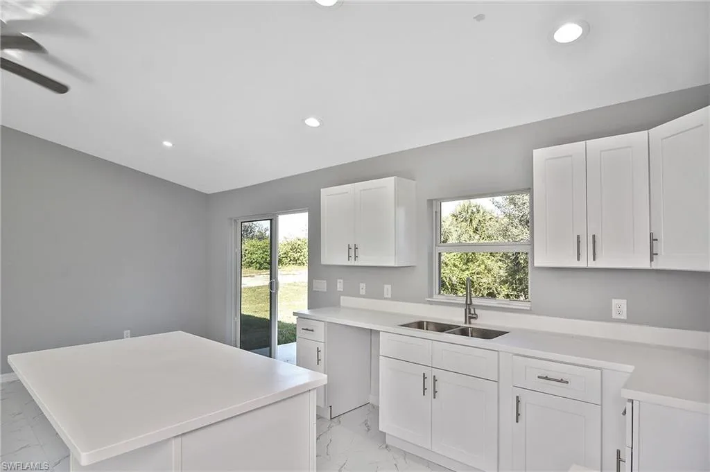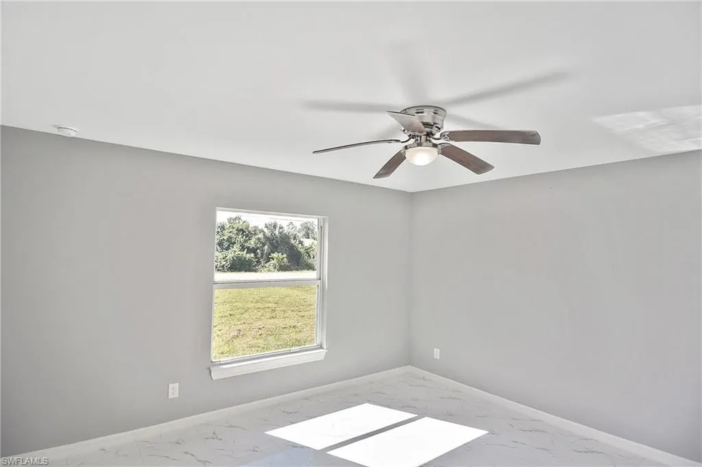 This is the perfect opportunity to own your very first home! This brand-new 3-bedroom, 2-bathroom home offers 1,729 sq. ft. total with a smart split floor plan that gives everyone their own privacy. You’ll love the bright, open layout that makes the kitchen, living, and dining areas feel welcoming and perfect for spending time with family and friends. The kitchen features classic white shaker cabinets, and there’s easy-to-maintain tile flooring throughout the entire home—no carpet to worry about! All windows are impact-resistant and equipped with Low-E glass, helping keep your home safe and energy-efficient year-round. Each bedroom is spacious, and the primary suite comes with its own bathroom and a walk-in closet. With ceiling fans in every room, you’ll stay cool and comfortable all year long. Plus, the 2-car garage offers plenty of space for parking and storage. Located in Lehigh Acres, this home is close to schools, parks, and shopping, making it a great place to put down roots. Construction is almost finished—your new home will be ready in just a few weeks!