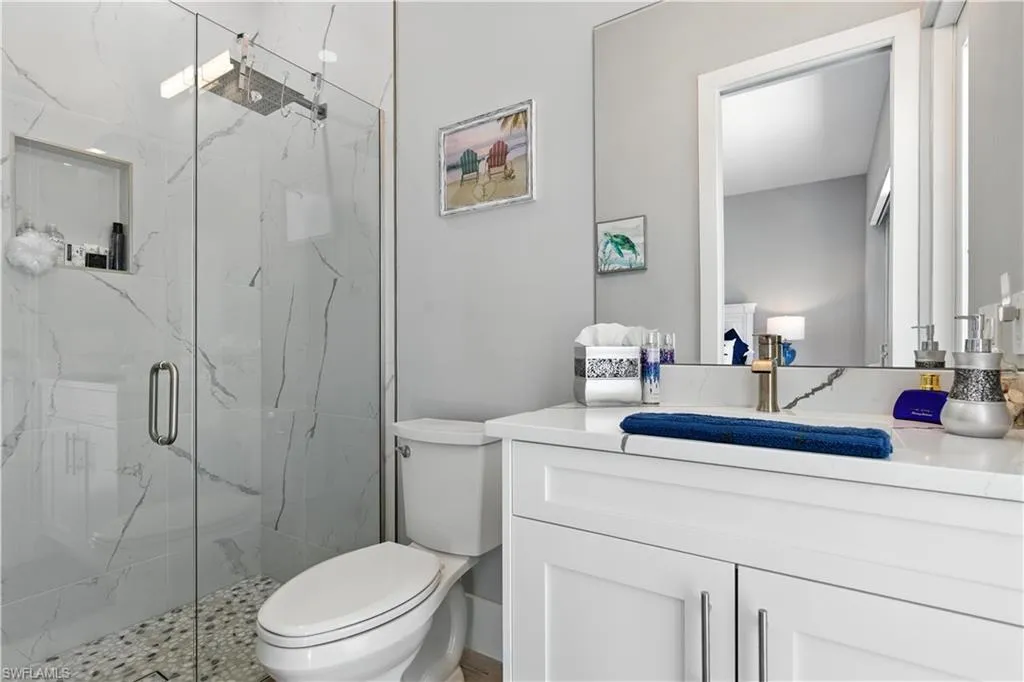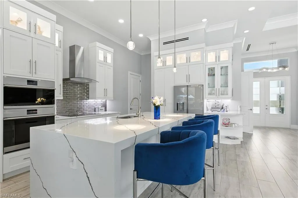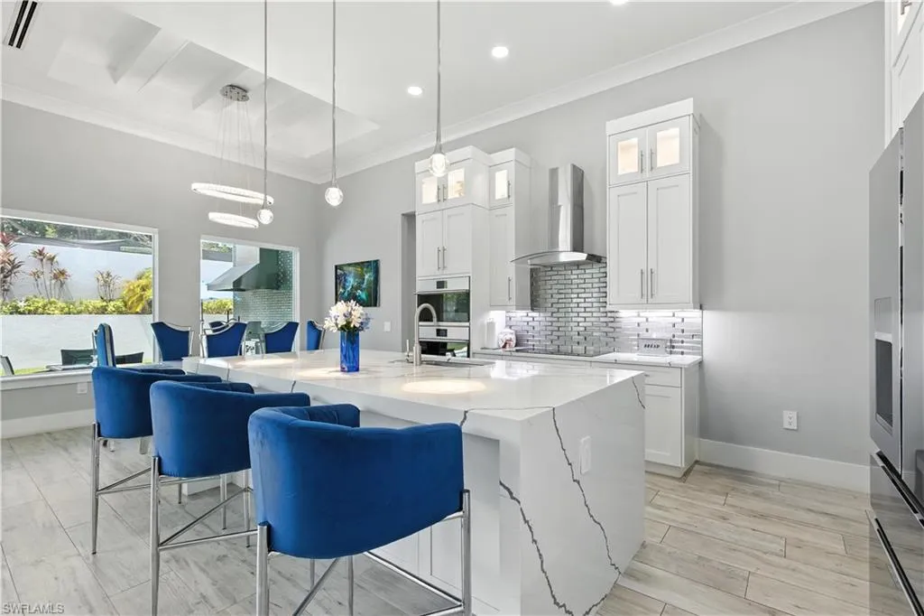 Exquisite Coastal Estate – Steps from the Gulf, Half-Acre Lot, and Fully Customized This stunning 4-bedroom plus den, 3-car garage residence sits on a rare half-acre homesite in one of the most exclusive estate neighborhoods near Marco Island—just steps from the shimmering waters of the Gulf. Built with elevated design and having sustained no hurricane damage, this home offers the perfect blend of safety, sophistication, and seaside luxury. Inside, you’ll find soaring vaulted ceilings and a bright, coastal-inspired interior that’s filled with natural light. Wide-plank tile flooring runs throughout, anchoring an open layout that flows effortlessly from the living area to the dining area to the entertaining space. The custom kitchen is a chef’s dream, complete with quartz countertops, sleek white cabinetry, double wall ovens, and a large island perfect for gathering. A built-in wet bar adds a touch of elegance, ideal for hosting or everyday enjoyment. Glass sliders open to an expansive covered lanai, where an outdoor kitchen, TV lounge, and a custom-designed pool and spa with elegant water features create your own private resort. A 500-gallon underground propane tank fuels the built-in BBQ & generator. The oversized yard is beautifully landscaped, offering space and privacy rarely found this close to the Gulf. The primary suite is a true retreat, featuring direct access to the outdoor living space, dual walk-in closets, and a luxurious spa-style bathroom with a glass-enclosed walk-in shower and a dramatic freestanding soaking tub. A dedicated home office with large windows provides inspiring views and abundant natural light, making it a productive and peaceful workspace. This is a rare opportunity to own in a high-end coastal enclave with no HOA restrictions, quick access to the open Gulf waters, and every feature today’s buyers are looking for. Whether you’re seeking a full-time residence or a high-performing rental investment, this home delivers on all fronts — location, design, and lifestyle.