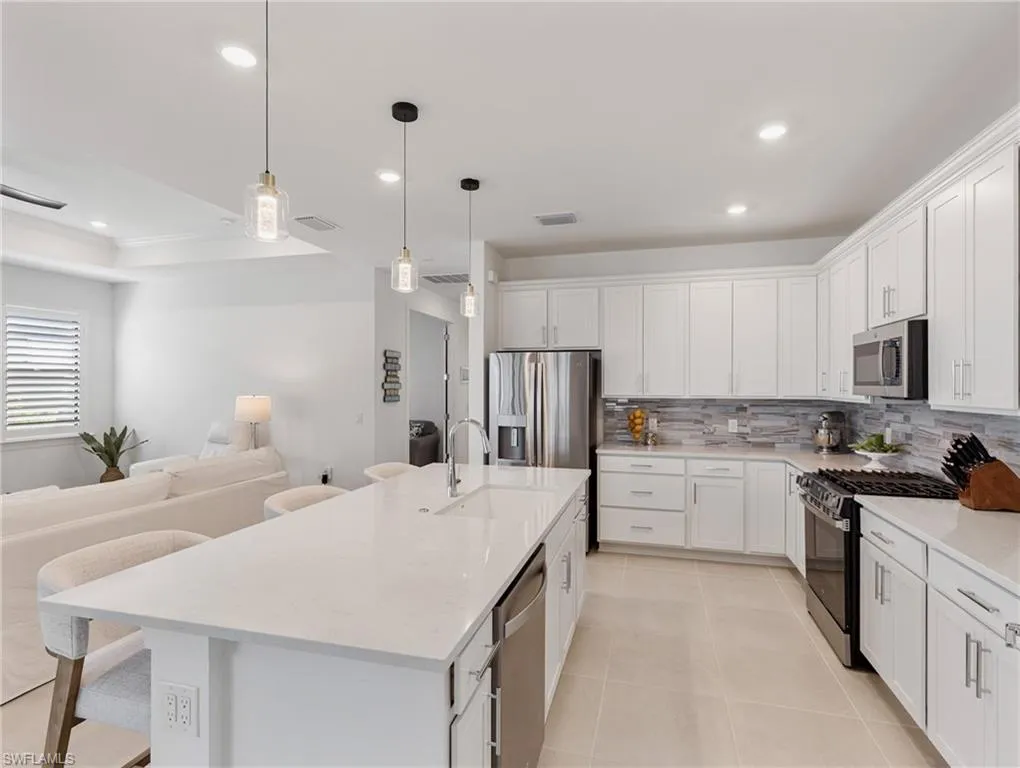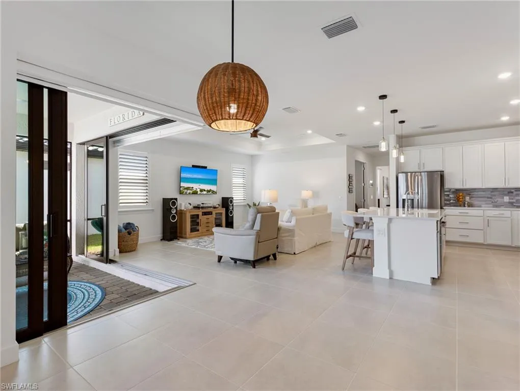 “Better than New” and built in 2025….still under Builder Warranty. This stunning 3-bedroom, 3-bathroom plus Den home in the sought-after community of Verdana Village offers over 2100 sq. ft. of beautifully upgraded living space. Highlights include hurricane-rated windows and doors, a 4-foot garage extension, a tray ceiling in the living room, and zero-corner glass doors in the living and dining areas for seamless indoor-outdoor living with space to entertain, privacy and beautiful lake views. The home features three full baths with frameless shower doors, a chef’s kitchen with a composite sink, soft-close doors and drawers with pull-outs, and a full laundry room finished with cabinets and a utilty sink. Additional upgrades include a 50-amp generator plug, dimmer switches, plantation shutters, remote-control fans, remote shades on sliders, and a screened-in front lanai. The epoxy-finished garage with overhead storage adds both style and functionality, making this Verdana Village residence the perfect combination of luxury, comfort, and practicality. It’s all been done, tastefully and ready for you!!! Verdana Village delivers true resort-style living with a clubhouse offering dining, a poolside bar, and a zero-entry pool with spa and cabanas. Residents also enjoy a fitness center, indoor and outdoor sports courts, playgrounds, dog parks, and year-round events hosted by a dedicated lifestyle director. Ideally located near shopping, dining, Southwest Florida International Airport, and the Gulf’s white-sand beaches, Verdana Village is the perfect blend of luxury and convenience.