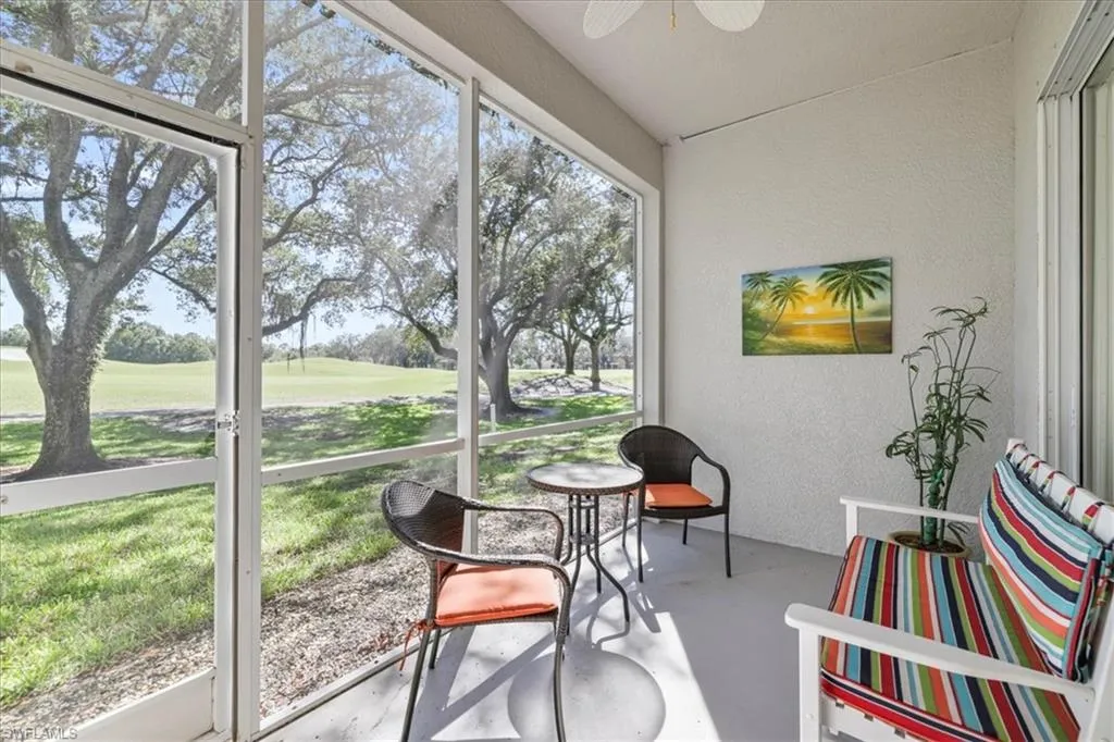 Live the Southwest Florida lifestyle in this furnished Move In Ready 2BR/2BA condo with 1 Car Garage. Enjoy the Golf Course Views from your Screened Lanai. Located in the gated community of Summerwinds at Gateway Greens. This home offers a split-bedroom layout, spacious kitchen, open floor plan, primary suite with dual sinks and walk-in shower, in unit laundry room with extra storage. The private courtyard & garden entry gives you a space to create your own oasis. The Hurricane protection gives peace of mind. The heated pool and spa are just steps away! HOA includes internet, cable, water, sewer & trash. Residents have access to the Gateway Commons pool, hot tub, and dog park, plus optional Club at Gateway memberships offering golf, fitness, tennis, pickleball, and more. Conveniently located near RSW Airport, shopping, dining, entertainment, and Gulf beaches. Perfect for year-round living or investment!