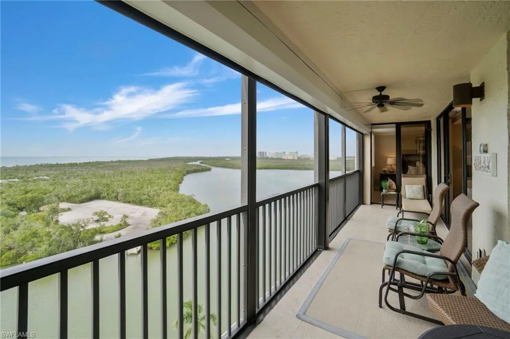Just STEPS from Vanderbilt BEACH, this 10th-floor retreat soars above the coast, offering breathtaking sunsets that paint the sky in gold while the Gulf shimmers below. Move right in and fall in love with the serenity, the views, and the effortless beauty of this fully furnished, TURNKEY residence. This two-bedroom, two-bath home is a true coastal gem. Both bedrooms are master suites, providing privacy and comfort, while raised tray ceilings and elegant tile floors create a bright, open, and sophisticated living space. The lanai features electric hurricane shutters for convenience, and the property includes an assigned parking space and an extra storage room. A newer A/C and water heater add peace of mind. The building stands among the area’s highest elevations, with a newer seawall and NO HURRICANE DAMAGE from recent storms, a testament to its strength and design. Nestled within a gated community, this home offers the best of Naples living – steps from the crystal-blue Gulf waters, where everyday feels like vacation. Residents enjoy a large waterside pool and BBQ area, tennis, pickleball, and bocce courts, as well as boat docks and kayak leases, for endless days on the water.