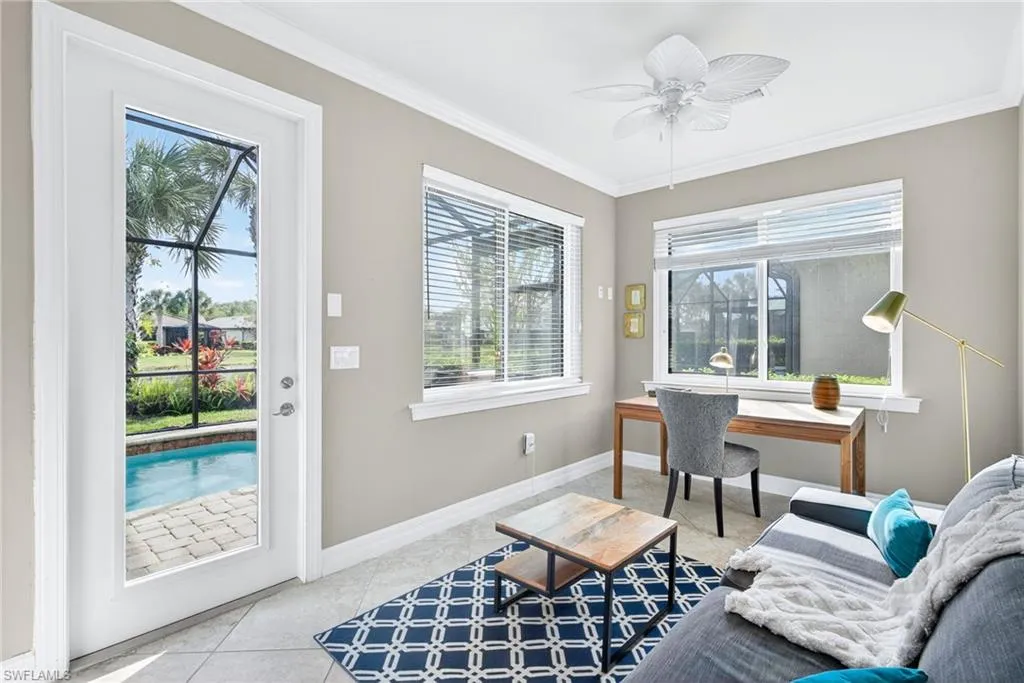 Welcome to your pool home in Bridgetown! This beautiful single family house sits on a peaceful lake, offering those laid-back water views you’ll love waking up to. With 2 Bedrooms plus a Den and Flex Room, this house offers so much living space. You’ll appreciate the bright, open layout and stylish upgrades throughout — Quartz countertops, upgraded cabinetry with lower cabinet pull-outs, stylish lighting and ceiling fans and crown molding. Plus, enjoy peace of mind with FULL HURRICANE IMPACT WINDOWS. Bridgetown is known for its fun, resort-style vibe. Meet your new neighbors at the sparkling resort pool or the lap pool. Stay active with tennis, pickleball, bocce, and the state-of-the-art fitness center. Or join in on the many social activities happening year-round. And talk about convenience — you’re close to shopping, dining, I-75, RSW airport, and just a short drive to our gorgeous beaches. Easy living, great views, and a fantastic community — this one checks all the boxes!