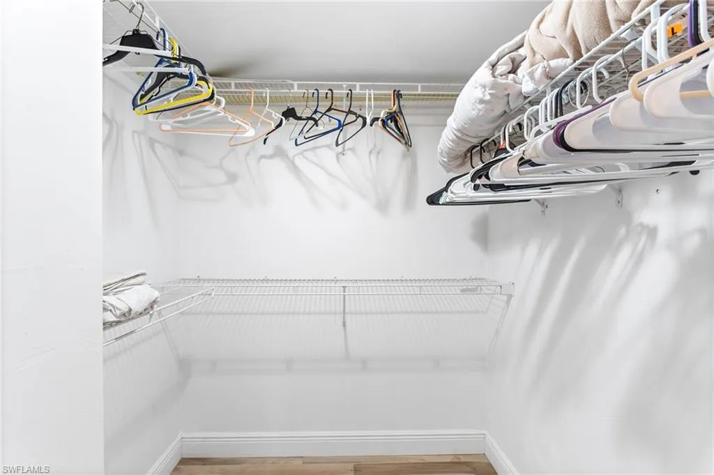 Brightly lit, gorgeous view, AND a garage!! This 3-bedroom unit is a must-have for anyone who wants to enjoy the best of Southwest Florida living. The spacious condo has an open floor plan and large bedrooms. It’s a fifth-floor end unit with a southwest exposure, so you get tons of wonderful sunshine and views of all the sunsets over the preserve, and still have quiet and privacy up so high. Gorgeous tile in the living area creates a clean, sleek look, while wood-look flooring in the bedrooms adds warmth and coziness. The kitchen features stainless steel appliances, a tasking island, pantry, and peninsula with seating space. The in-unit utility room includes a full-size washer and dryer and laundry tub. There’s a sizable storage closet on the same floor, right by the elevators, which a lot of neighbors use to store their beach gear and bicycles–but it’s bonus space for you, because this unit comes with a rarely available one-car garage, as well.