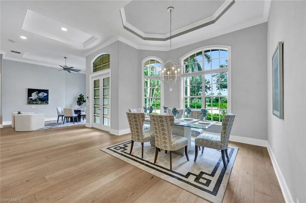Where Indoor-Outdoor Living Takes Center Stage. Sited on an oversized 24,000-square-foot lot, this sprawling ranch-style residence is designed to erase the boundaries between indoors and out. Light-bathed interiors rise to 12–14 ft ceilings, while a 22-ft great room dissolves completely via telescoping sliders—opening the home to uninterrupted views of lush tropical foliage beyond the expansive lanai. A sophisticated reimagining has transformed the open-concept plan, blending a chef-inspired kitchen with walk-in pantry, morning-room banquette, and wine bar into seamless living and dining spaces—perfectly attuned to an indoor–outdoor lifestyle. Warm wood floors, custom ceiling details and refined wall treatments along with stylish remodeled bathrooms create a modern yet welcoming ambiance. Offering 4,132 AC sq ft on one level, the home features four ensuite bedrooms, two half baths, and an office with walk-in closet that flexes effortlessly into a fifth bedroom. XL walk-in wardrobes with custom systems and generous closets throughout elevate everyday luxury. Outdoors, a renovated saltwater pool and spa—both gas-heated—anchor a travertine lanai deck framed by a new panorama-panel screen enclosure. New landscaping blends naturally with the preserve backdrop, adding to the home’s beautiful surroundings and peaceful privacy. With no homes across the street, serene lake and golf views unfold to the south, while a long paver drive, double-wide motor court, and side-entry three-bay garage enhance the home’s impressive curb appeal—punctuated by a new tile roof. Recent upgrades include motorized Storm Smart screens, new Pentair pool equipment, new HVAC and water heating systems, an Aquakleen reverse osmosis system, new window treatments incl. motorized Hunter Douglas shades, and more. Located within Collier’s Reserve—less than 2 miles to Vanderbilt Beach at Wiggins Pass—residents enjoy a gated, highly coveted Audubon Sanctuary community with world-class golf, active tennis and pickleball programs, fitness & wellness, bocce and kayaking, multiple dining venues and a vibrant social calendar, complemented by a distinctive commitment to environmental stewardship.