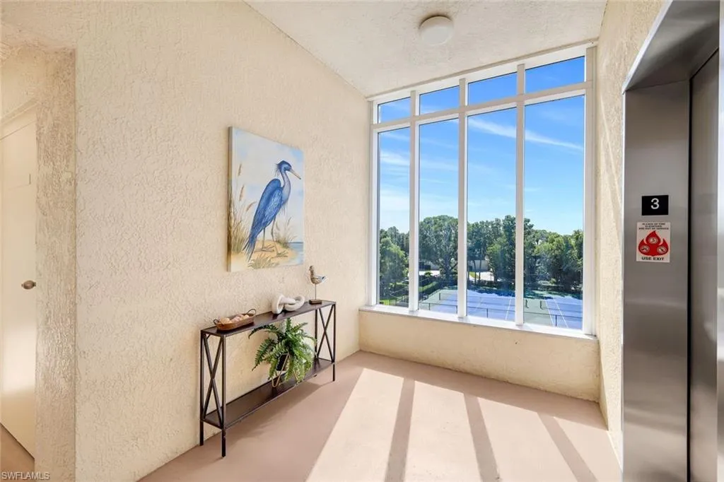 Enjoy the serenity of golf course and lake views from this beautifully updated top-floor residence in the exclusive Greenbriar neighborhood of Bonita Bay. Vaulted ceilings—unique to top-floor units—enhance the open, airy ambiance, while the absence of neighbors above ensures peace and privacy. Inside, you’ll find a clean, contemporary motif with custom trim detailing, recessed kitchen lighting, and thoughtful updates throughout—from the kitchen to both bathrooms. The spacious 3-bed, 2-bath layout includes a generous primary suite with an en-suite bath, plus two additional bedrooms ideal for guests or a home office. Relax or entertain on the screened lanai, where sweeping golf and lake views create a stunning backdrop. Greenbriar offers a true resort-style atmosphere, complete with a large community pool and spa, two tennis courts, and a brand-new pavilion with an upgraded pool house, 75″ TV, and ample seating for social gatherings. Secured underground parking provides convenience and peace of mind. Residents also enjoy access to Bonita Bay’s unmatched amenities, including a private beach park on the Gulf of Mexico, over 12 miles of scenic walking and biking paths, canoe and kayak launches, a full-service marina with Gulf access, and waterfront dining at Backwater Jack’s. Membership to the Bonita Bay Club—featuring five championship golf courses, tennis and pickleball courts, a fitness center, spa, and multiple restaurants—is available but not mandatory. Discover refined coastal living in one of Southwest Florida’s most prestigious communities—where every day feels like a getaway