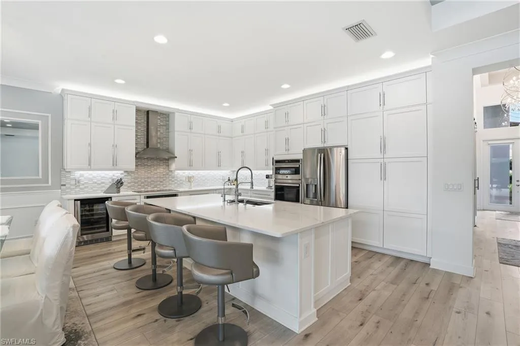 Step through the front doors into an inviting, light-filled interior that showcases an open-concept layout, luxury linoleum flooring, and seamless indoor-outdoor transitions. The gourmet kitchen is a true centerpiece, featuring sleek quartz countertops, a grand island, wine refrigerator, and premium appliances ideal for entertaining or enjoying everyday moments in style. Home chefs will love the option of either a natural gas or induction stovetop, offering flexibility for every cooking preference. Built as a natural gas powered home, this residence combines modern luxury with energy efficiency.