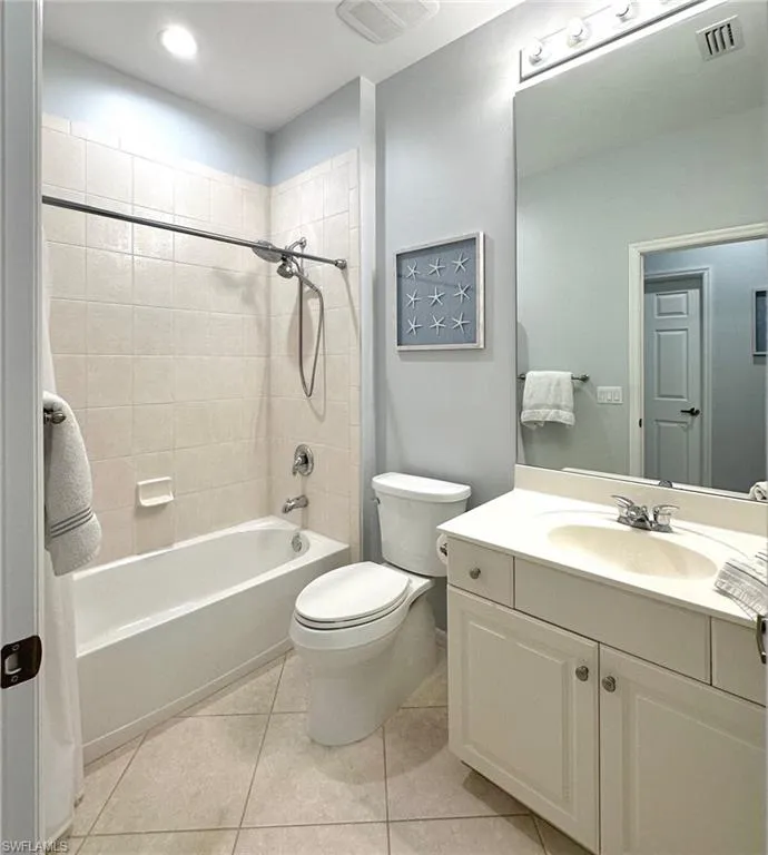 Toscana is one of the friendliest neighborhoods in Vasari. This two -story, 3 bedroom / den / 2 bath coach home being sold “turnkey” has a large great room with vaulted ceilings, dining room, breakfast room and a large screened lanai. The “gourmet” kitchen is perfect for the home chef or the “take out” specialist. The kitchen features a Samsung French Door Refrigerator and all newer appliances; 42″ white cabinets; granite countertops and recessed lighting. The carriage home is loaded with upgrades such as Plantation shutters in the owner’s suite; Whirlpool spa in owner’s bath; two walk-in closets, neutral tile on a diagonal; recessed lighting in the family room; There is even a Hunter Douglas remote to control the window covers in the family room.