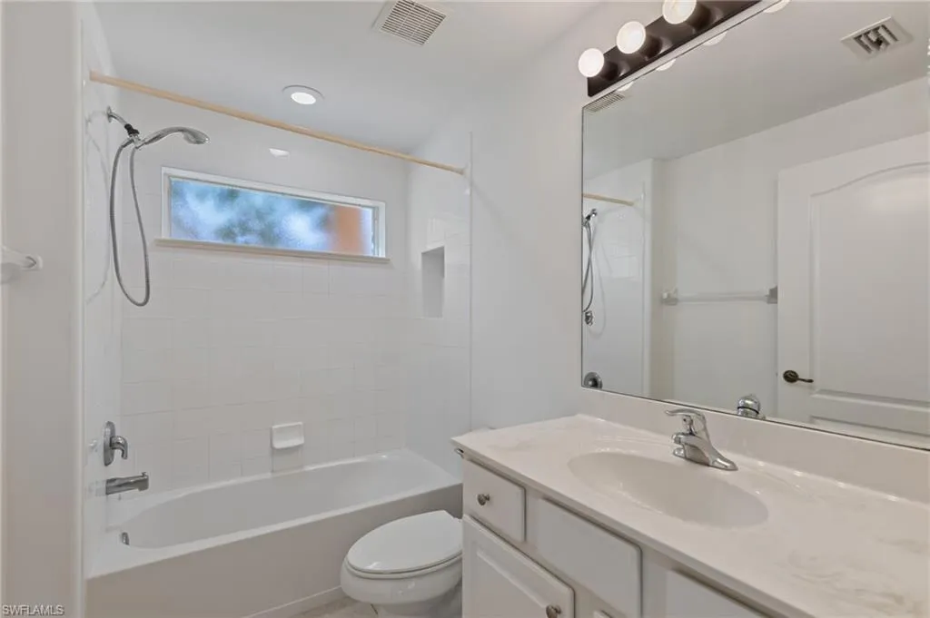 On a larger lot, set near two serene preserve areas, this home delivers peaceful natural views. Inside, you’ll find a professionally-painted light and bright layout, with a spacious living and dining area, ideal for relaxing or entertaining. The kitchen features stainless steel appliances, new combo ice maker, ample cabinet space and solid surface countertops, plus a cozy breakfast nook for casual dining. The 5-year young HVAC system keeps the home comfortable. The generous primary suite has an ensuite bath with dual vanities, two closets, and a walk-in shower. Two additional bedrooms, a full second bathroom, and ample closets provide plenty of space for everyone. A separate laundry room, with NEW washer and dryer, leads to the refreshed 2-car garage, including newly resurfaced floor. The screened patio and heated pool create a relaxing outdoor oasis surrounded by lush greenery. Tuscany Cove residents enjoy resort-style amenities, including a lagoon-style pool and heated spa, fitness center, community room for get-togethers, billiards room, tennis courts, basketball, children’s splash play area and more—all with low HOA fees and within a beautifully-maintained, gated neighborhood located in a highly rated school district in Naples. Adjacent to shopping, dining, services, and conveniences, it’s a short 9 miles straight to the best beaches in Southwest Florida. Experience the perfect combination of comfort and amenities in this beautiful home!
