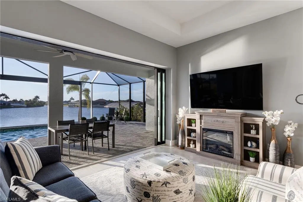 Perfect Cape Coral oasis with everything to feel at home located near golf course with ocean access! 2024-built 3BR/3BA lakefront home, open the zero clearance patio sliders to relax with the Florida weather and breathtaking gulf sunsets. Enjoy a saltwater pool with Wi-Fi app controls, super screen lanai, and upgraded 4-ton HVAC for instant comfort. Smart home features include Ring cameras, smart locks, thermostat, and garage controls, plus alarm system and whole-home RO with well and septic. Hammerhead driveway, 6-zone irrigation, and 50-gal water heater add convenience. Fully furnished and stocked optional for a perfect move in ready home or a STR investors. Set up as a profitable Airbnb with owner’s closet, supplies, and local management. Elegant, efficient, and professionally designed. Perfect for your home, vacations, or investment property