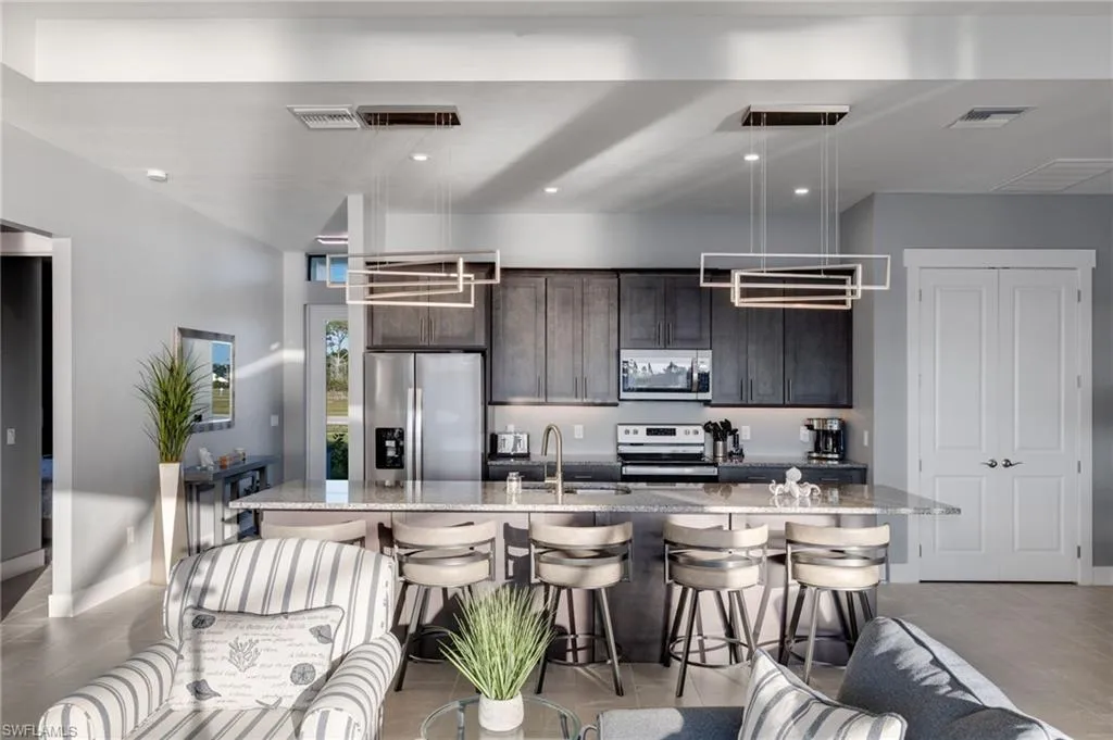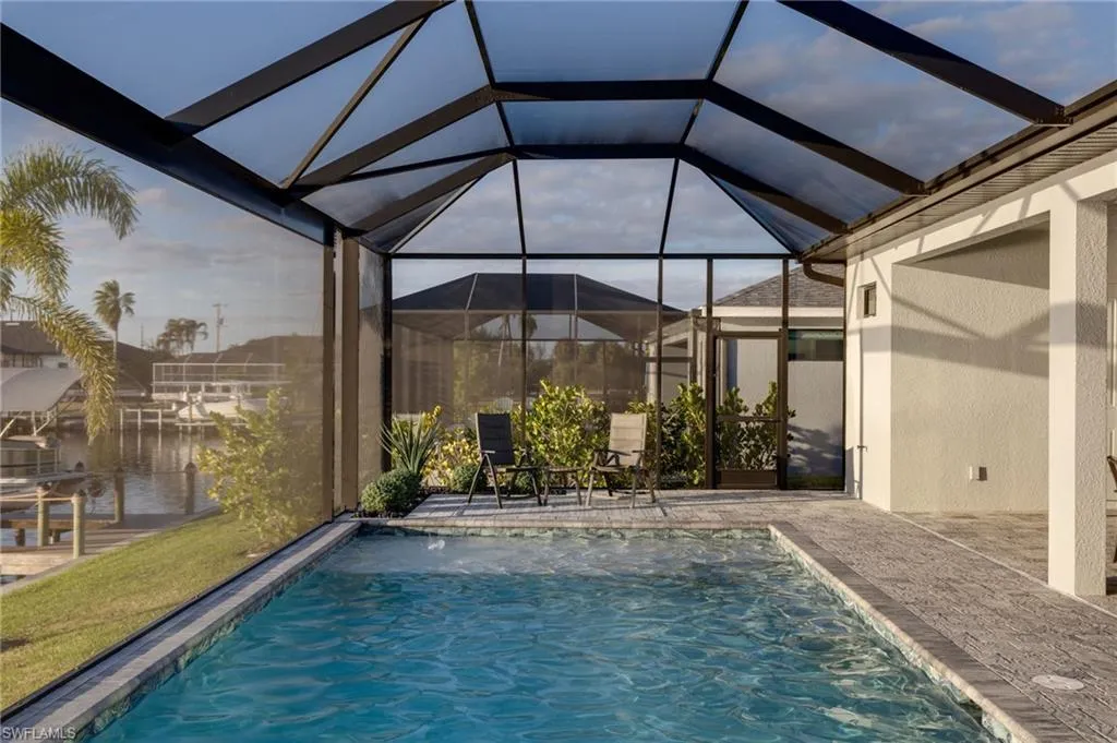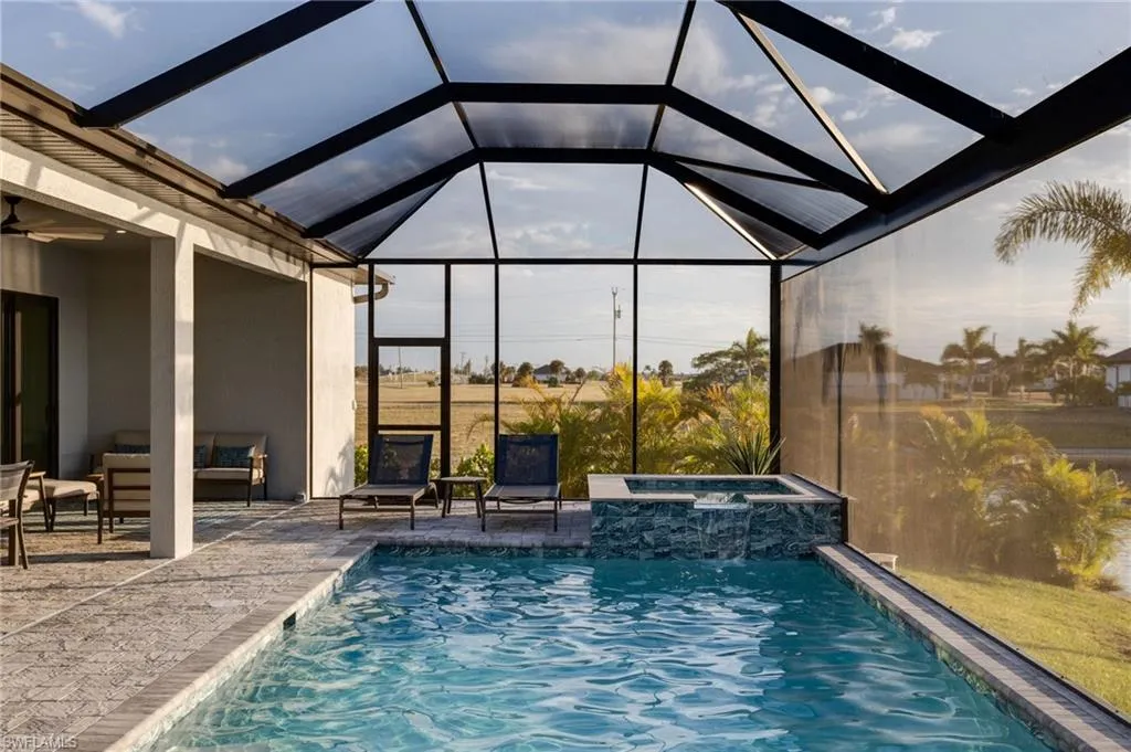 Perfect Cape Coral oasis with everything to feel at home located near golf course with ocean access! 2024-built 3BR/3BA lakefront home, open the zero clearance patio sliders to relax with the Florida weather and breathtaking gulf sunsets. Enjoy a saltwater pool with Wi-Fi app controls, super screen lanai, and upgraded 4-ton HVAC for instant comfort. Smart home features include Ring cameras, smart locks, thermostat, and garage controls, plus alarm system and whole-home RO with well and septic. Hammerhead driveway, 6-zone irrigation, and 50-gal water heater add convenience. Ready for Airbnb with owner’s closet, supplies, and local management. Elegant, efficient, and professionally designed. Perfect for your home, vacations, or investment property