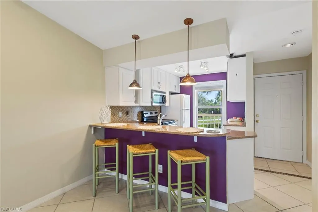 Resort-Style Living Between Naples & Marco Island. Discover the perfect blend of comfort, style, and coastal living in this bright 2-bedroom, 2-bath condominium offering approximately 843 sq. ft. of thoughtfully designed space. The open-concept layout features tile flooring throughout and an abundance of natural light. The kitchen flows directly into the dining and living areas and includes generous cabinetry plus a breakfast bar for casual meals or entertaining.