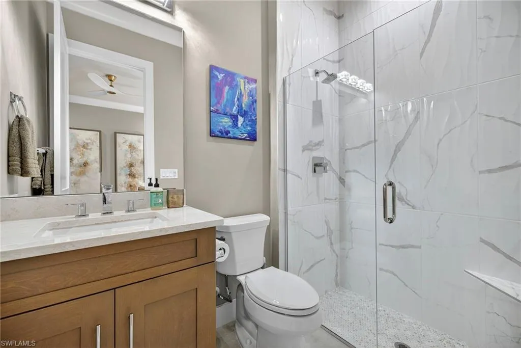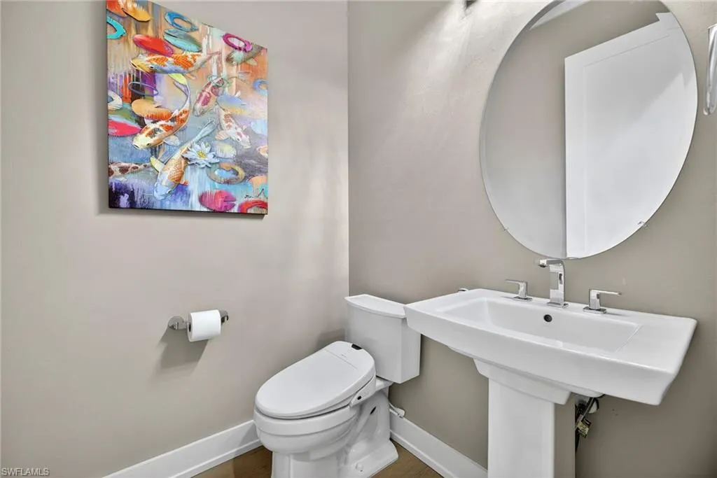 Welcome to 9171 Wisteria Way in desirable new community of Seven Shores. This 3 Bedroom+Den/3.5 Bathroom Sarasota model home is sited on the preeminent lakefront lot affording stunningly gorgeous expansive waterfront views making one feel as though you’re living in the Caribbean. This truly exceptional new home features the ideal blend of timeless elegance and modern luxury. Enter this 3500 square foot entertainer’s dream home into a welcoming foyer opening to a grand open-concept living space with soaring ceiling and gorgeous upgraded wide-plank light oak hardwood floors. Wall of glass opens out to the outdoor living area and waterfront view seamlessly blending indoor/outdoor living. Fabulous outdoor living area with linear fireplace, built-in outdoor kitchen with upgraded Pellet grill and a breathtaking saltwater pool, spa and sun shelf with endless waterfront views and upgraded landscaping. Gorgeous living room, convenient dining area and a true chef’s eat-in kitchen replete with upgraded KitchenAid appliances including natural gas cooktop, shaker cabinetry, contemporary quartz countertops, oversized island and butler’s pantry ideal for entertaining. Master suite oasis features a spacious bedroom with water views plus a spa-like master bathroom with walk-in shower, separate vanities, separate water closet and 2 walk-in closets with CA Closets custom built-ins. On the opposite side of the home are 2 guest bedrooms, 2 bathrooms plus a sitting area that would make a great home office, home gym or family room for guests. Mud room with custom built-ins, 2 car attached garage with epoxy floor and mini-split AC plus a whole house generator. This truly exceptional home with endless upgrades is move-in ready. Seven Shores community amenity center offers a wide range of features designed for comfort, activity, and community enjoyment. Highlights include a resort-style pool, a welcoming clubhouse for social events, professional-grade tennis and pickleball courts, open lawn spaces for relaxation or games, a putting green for golf enthusiasts, and a fitness room. A dedicated Lifestyle Director plans and hosts events, activities, and gatherings to bring residents together and enhance everyday living. Convenient location to I-75, Naples and Fort Myers airports as well as downtown Naples renowned worldwide for its fine dining, shopping and beaches.